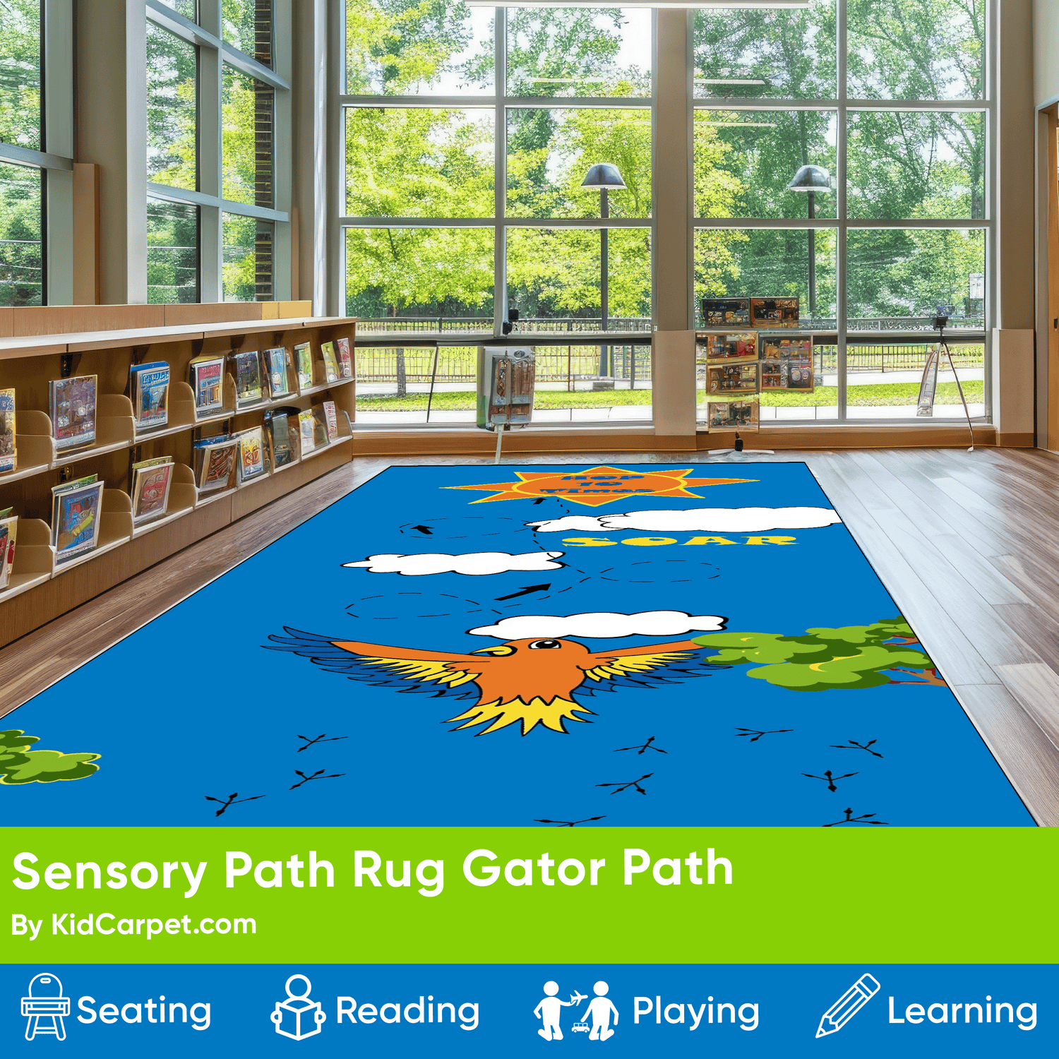 This rug can be paired with the Sensory Path Gator rug and/or Sensory Path Tiger rug