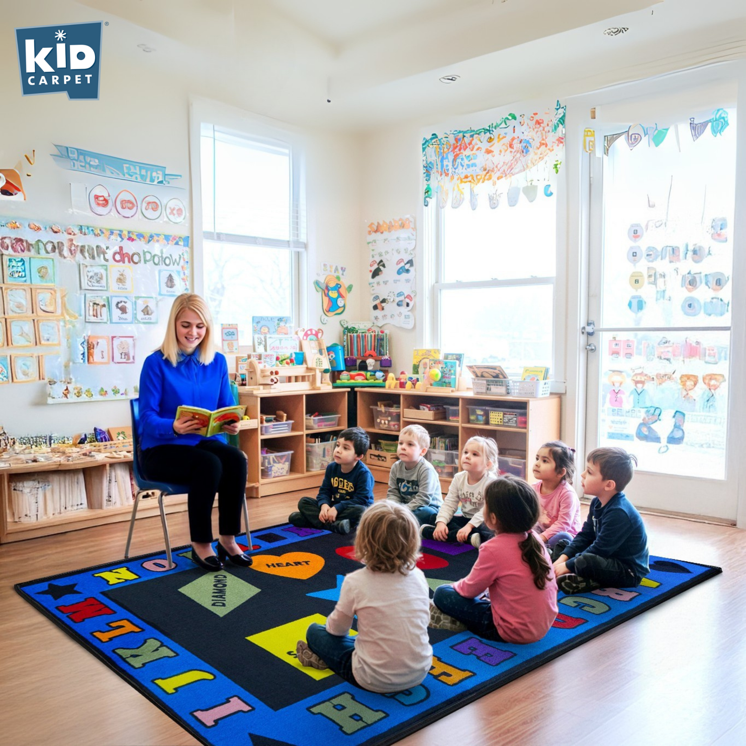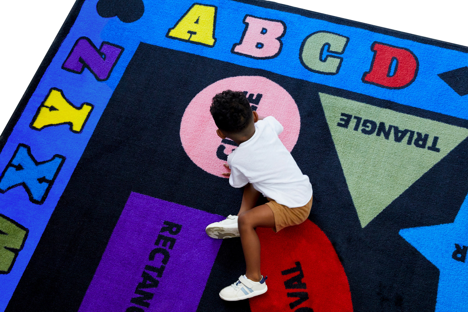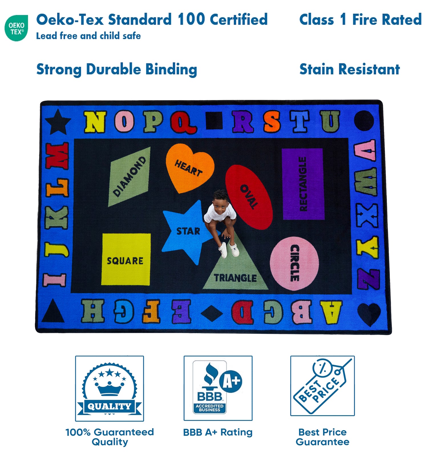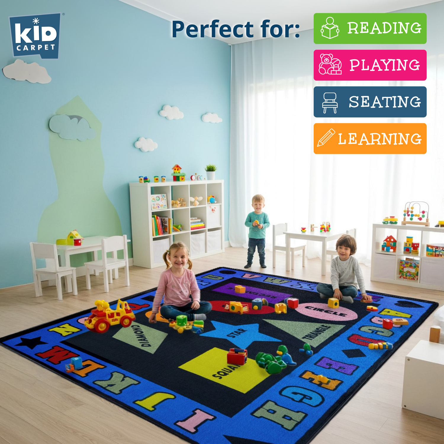 - This colorful shapes and alphabet rug is a KidCarpet.com exclusive design