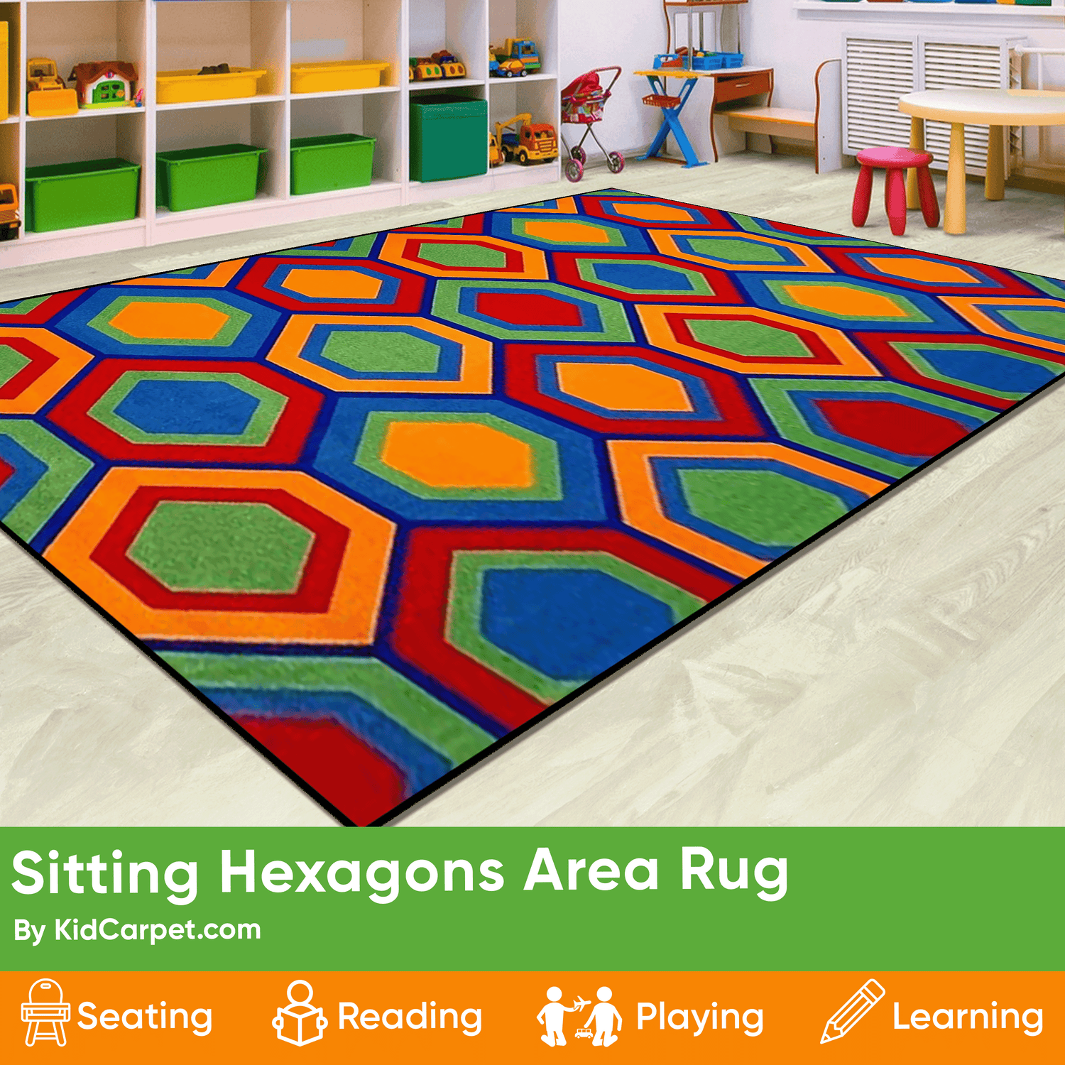 Sitting Hexagons Children's Rug - Sitting Hexagons Children's Rug / 4' X 6' Rectangle Quick Ship is backordered and will ship as soon as it is back in stock.