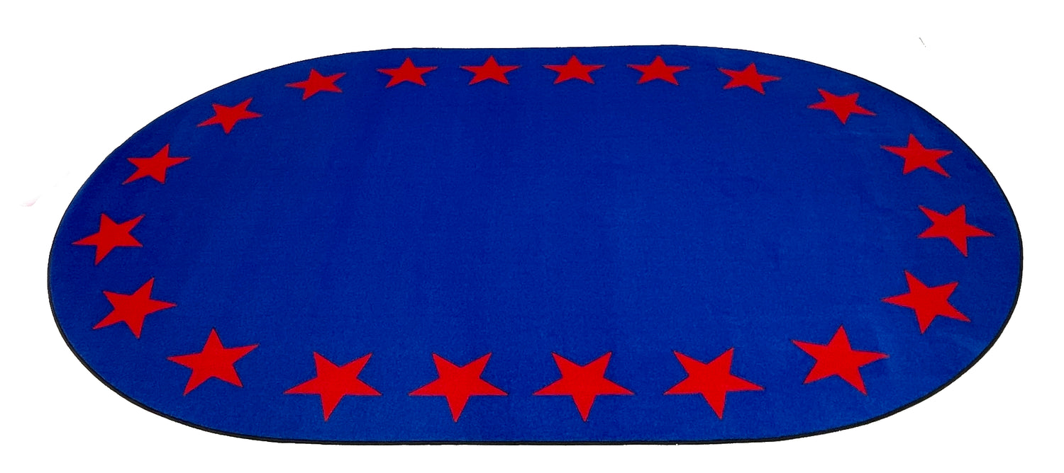 Star Border Classroom Rug - Star Border Rug / 6' x 8' 6" Oval with 16 STARS Quick Ship is backordered and will ship as soon as it is back in stock.