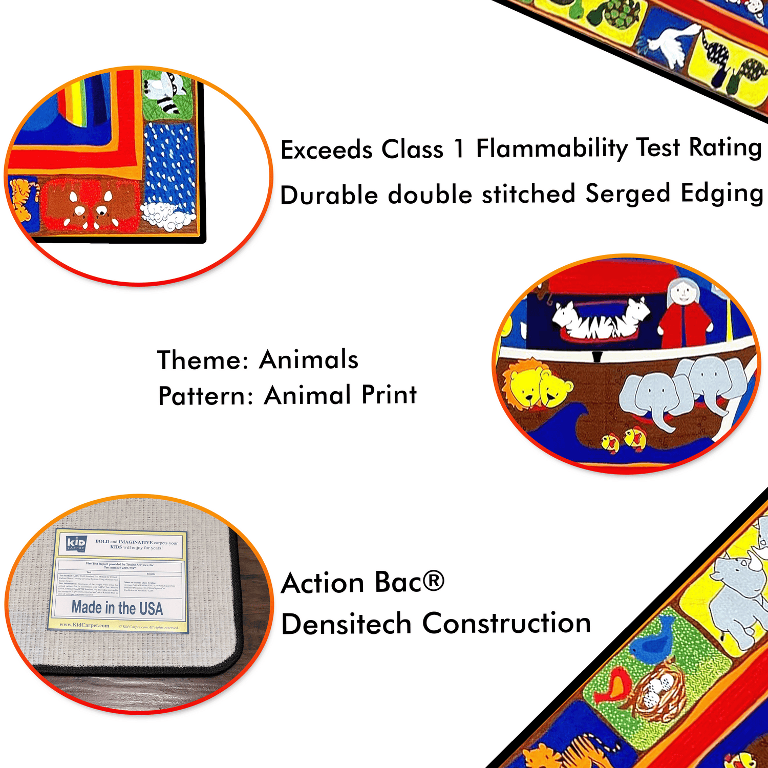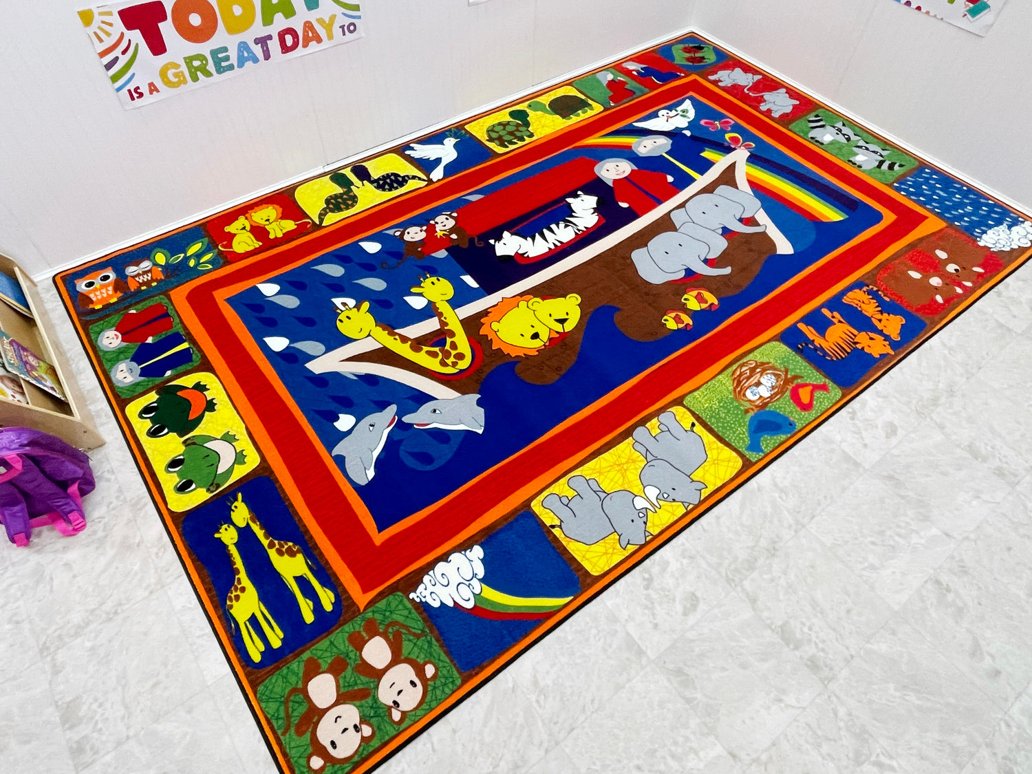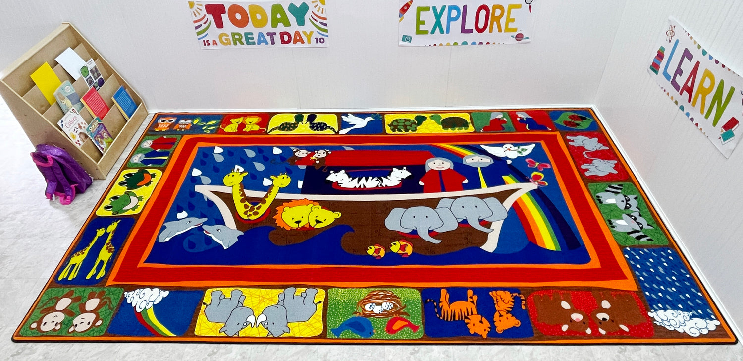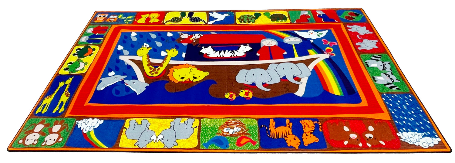 - Noah's Ark is a favorite religious theme for kids. With this brightly colored Bible rug, you can learn about the animals, the flood, and of God's promise to humanity in the colors of the rainbow.