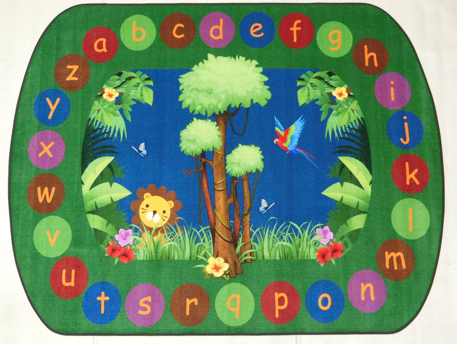 - Learn your ABC's with a friendly lion in this cute jungle scene daycare rug