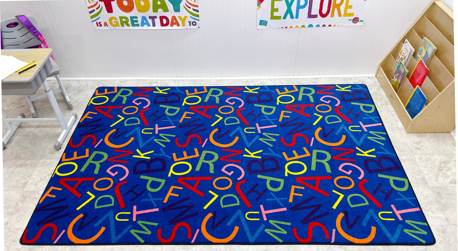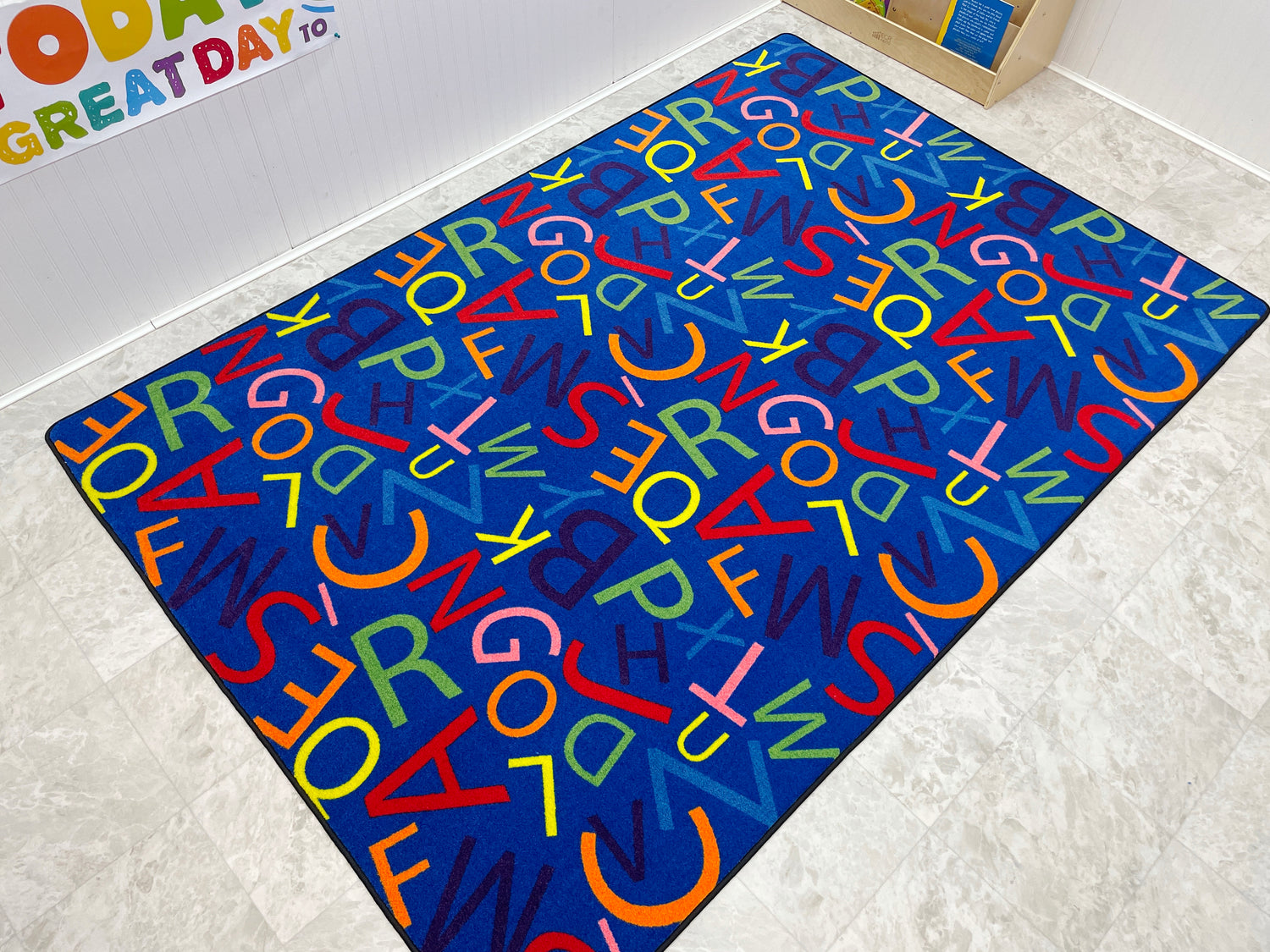 - Colorful tumbling letters fill this alphabet rug from corner to corner. Children can go on a letter hunt or spell out a given word. This classroom rug can be used as a great learning tool or as a lovely accent to your kid's room.