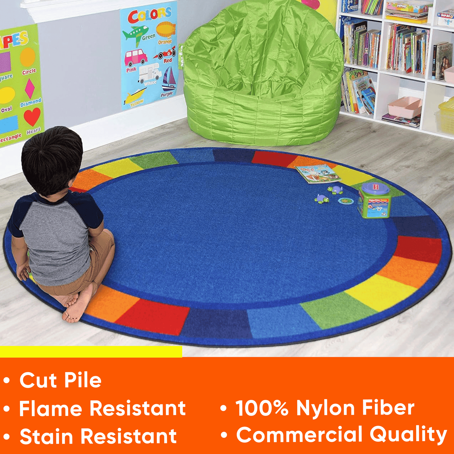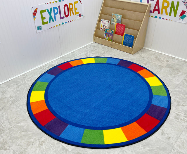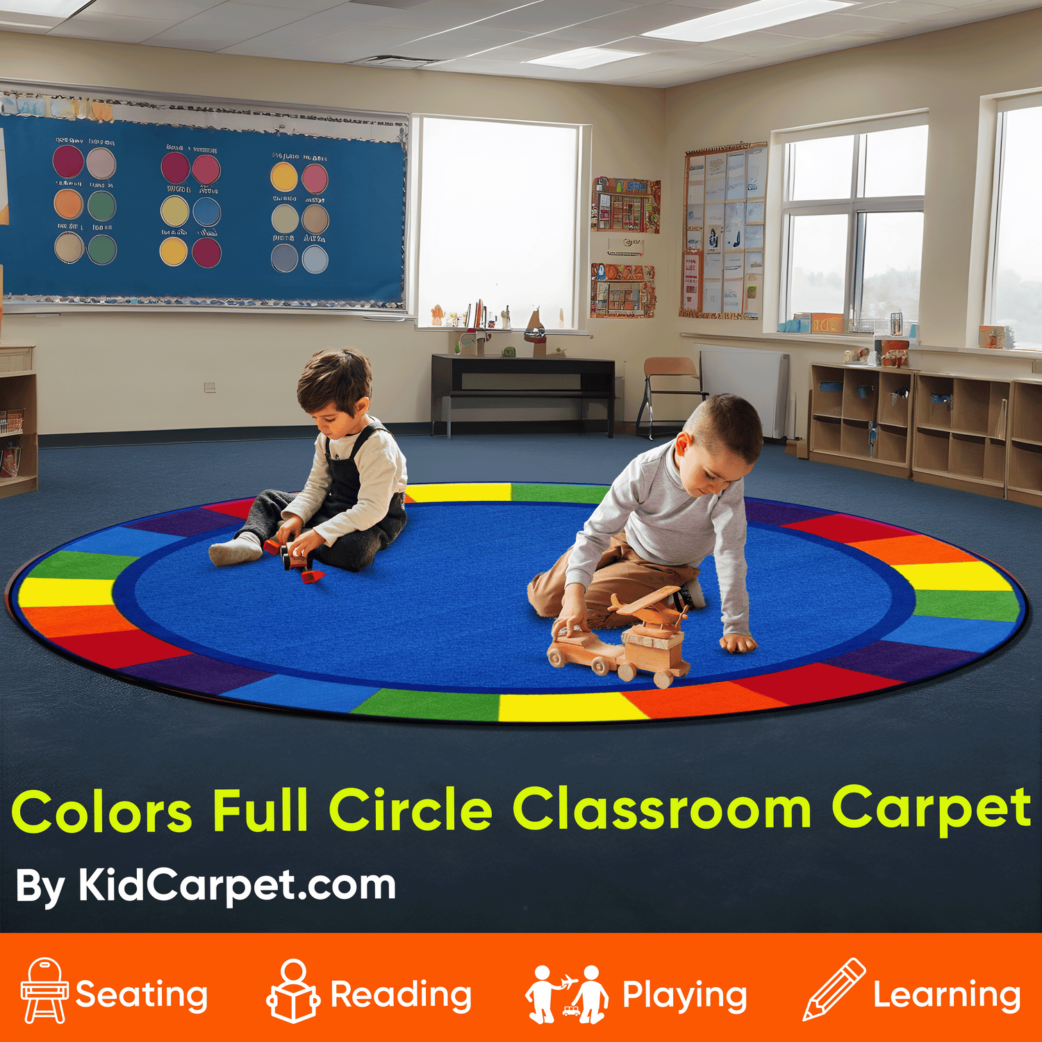- The Colors Full Circle Rug features a simple clean look with bright colors and plenty of seating room. This is a perfect school circle time rug.