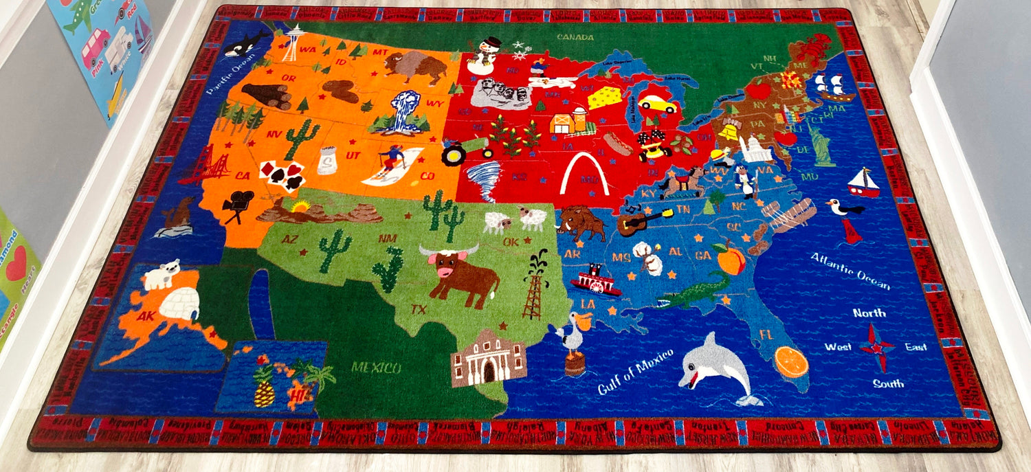 - This map of the USA rug is a KidCarpet.com exclusive design
