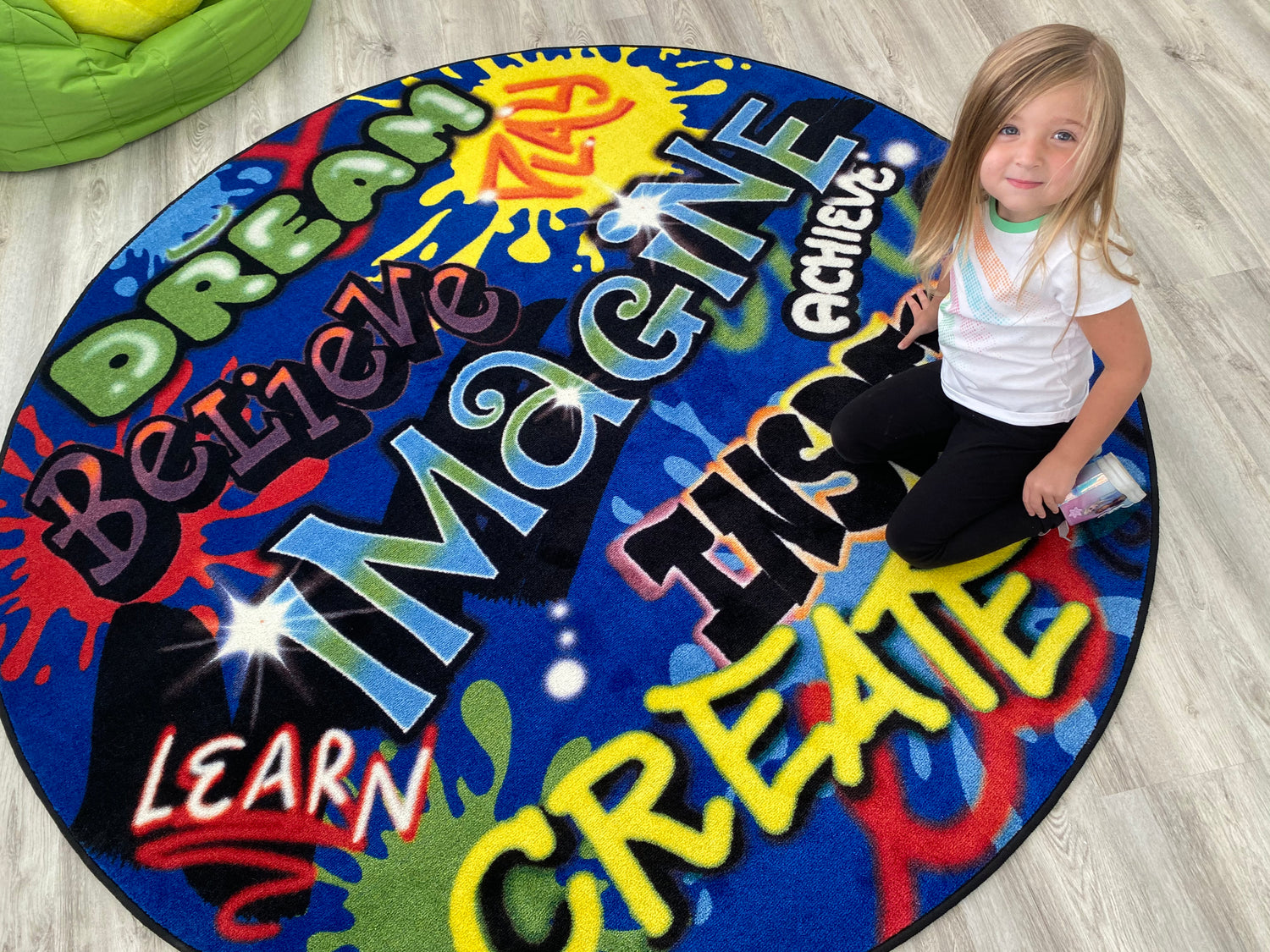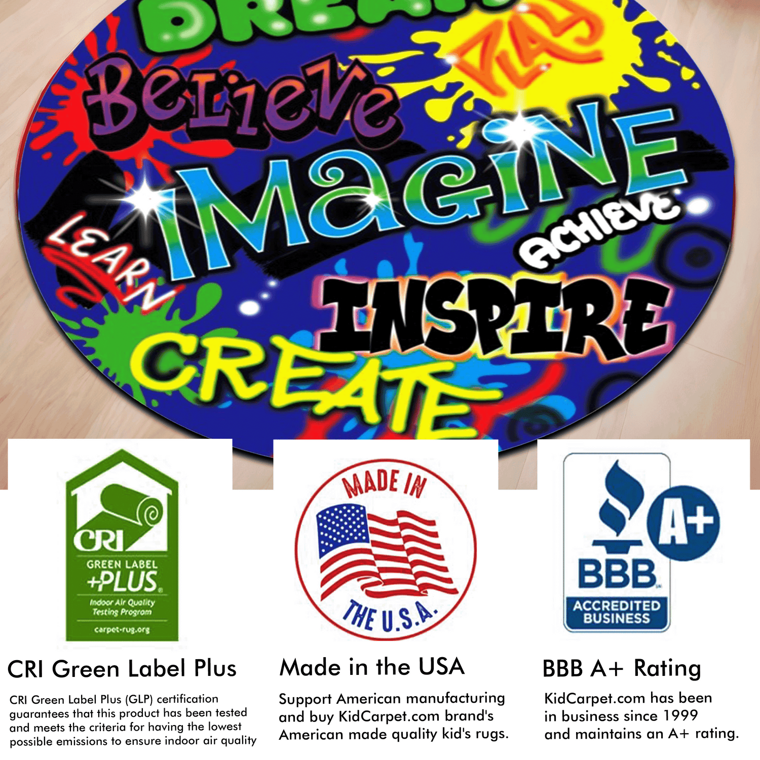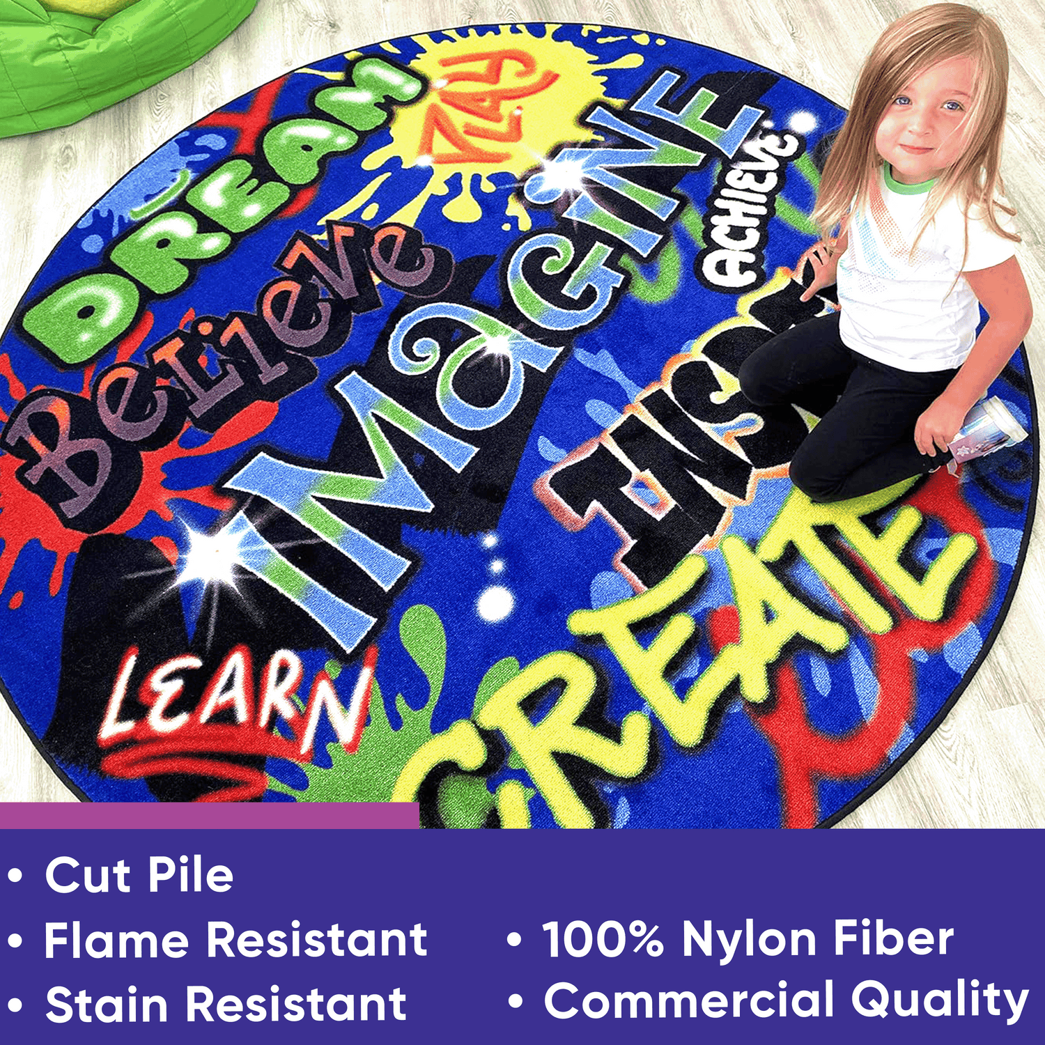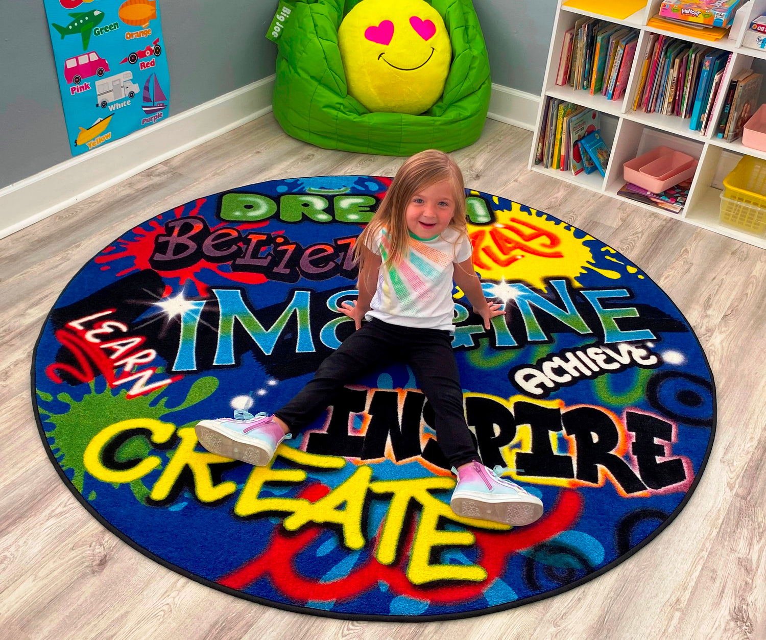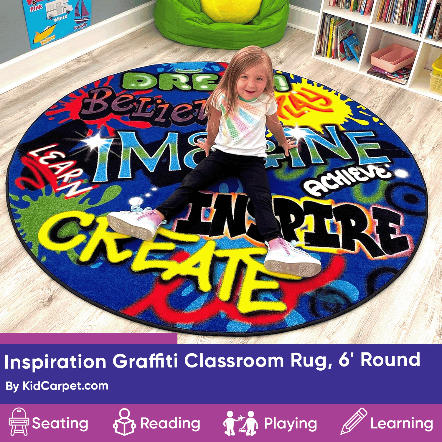 - This graffiti kid's rug is perfect for a kids' recreation or creativity center. Let this bright and fun kid's rug inspire your kids to play, learn, create and achieve!