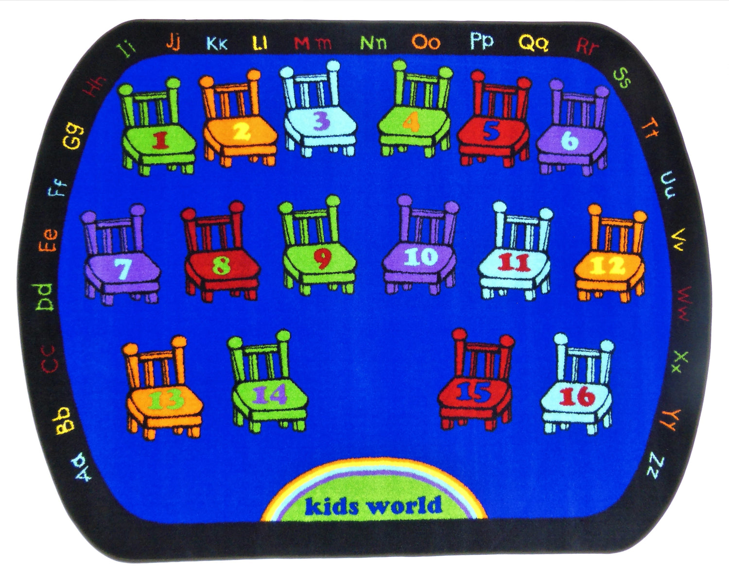 - Every child in the class will have a place to sit with this vibrant classroom seating rug! The full alphabet, numbers 1-16 and an array of colors make this rug an excellent learning tool for all classrooms.