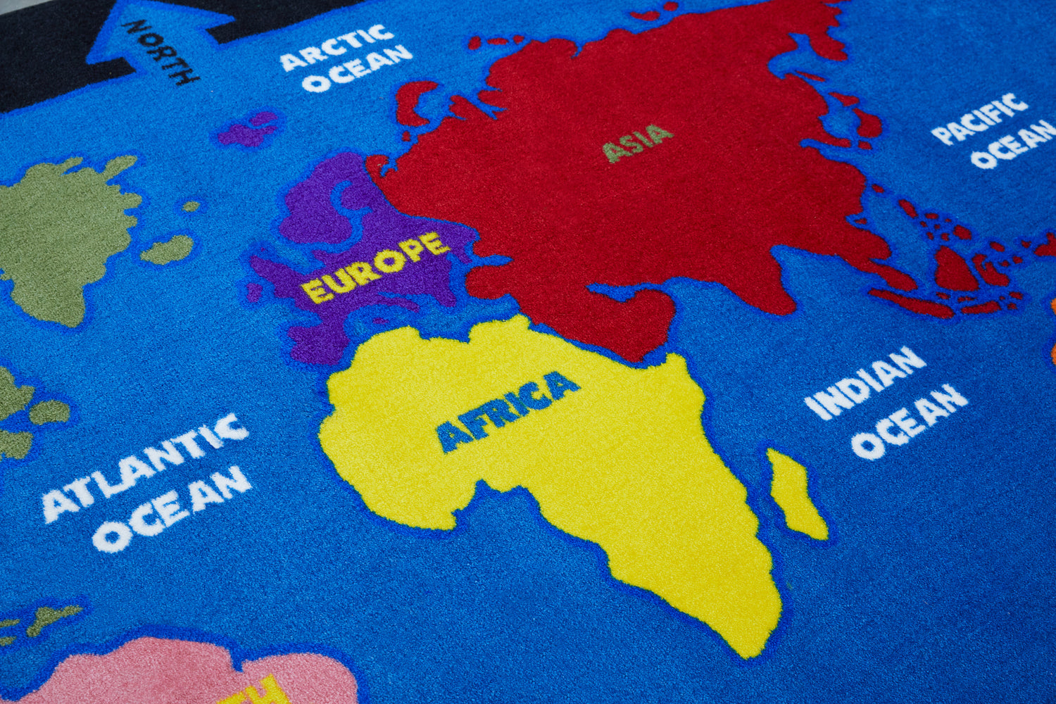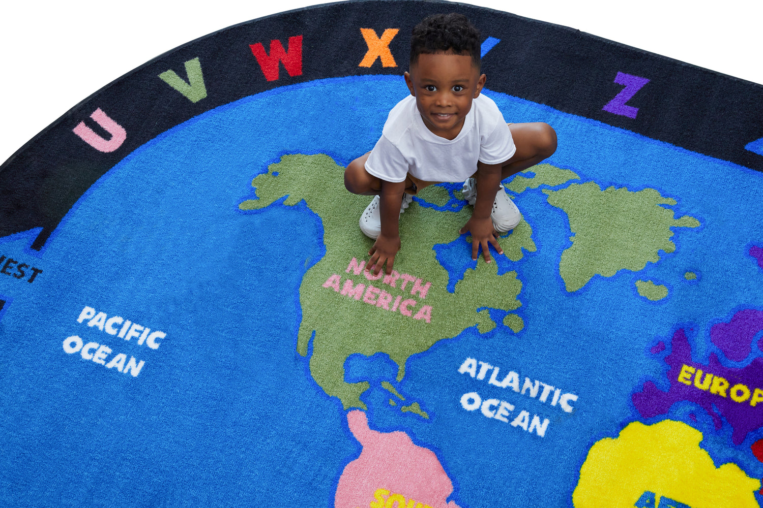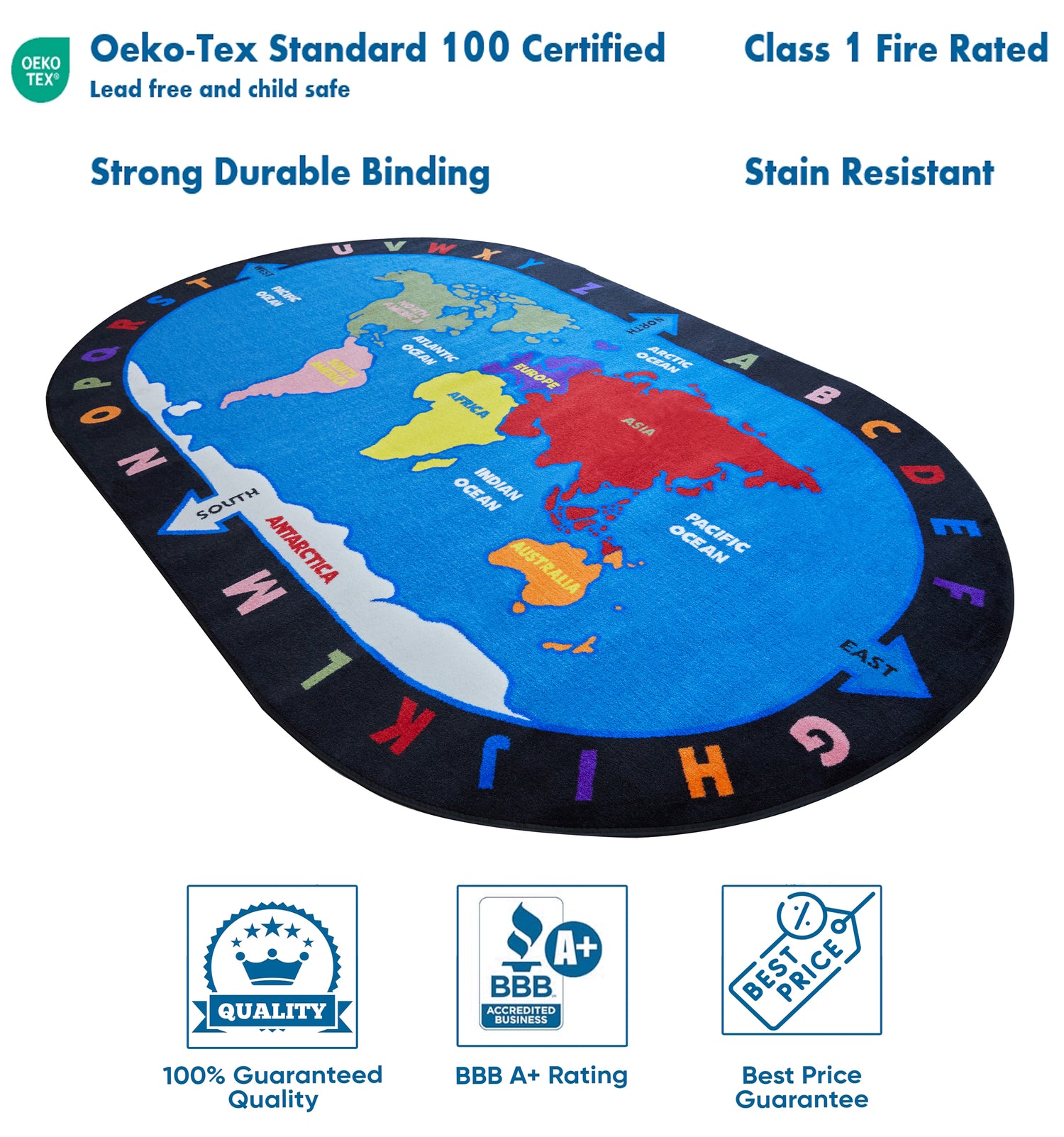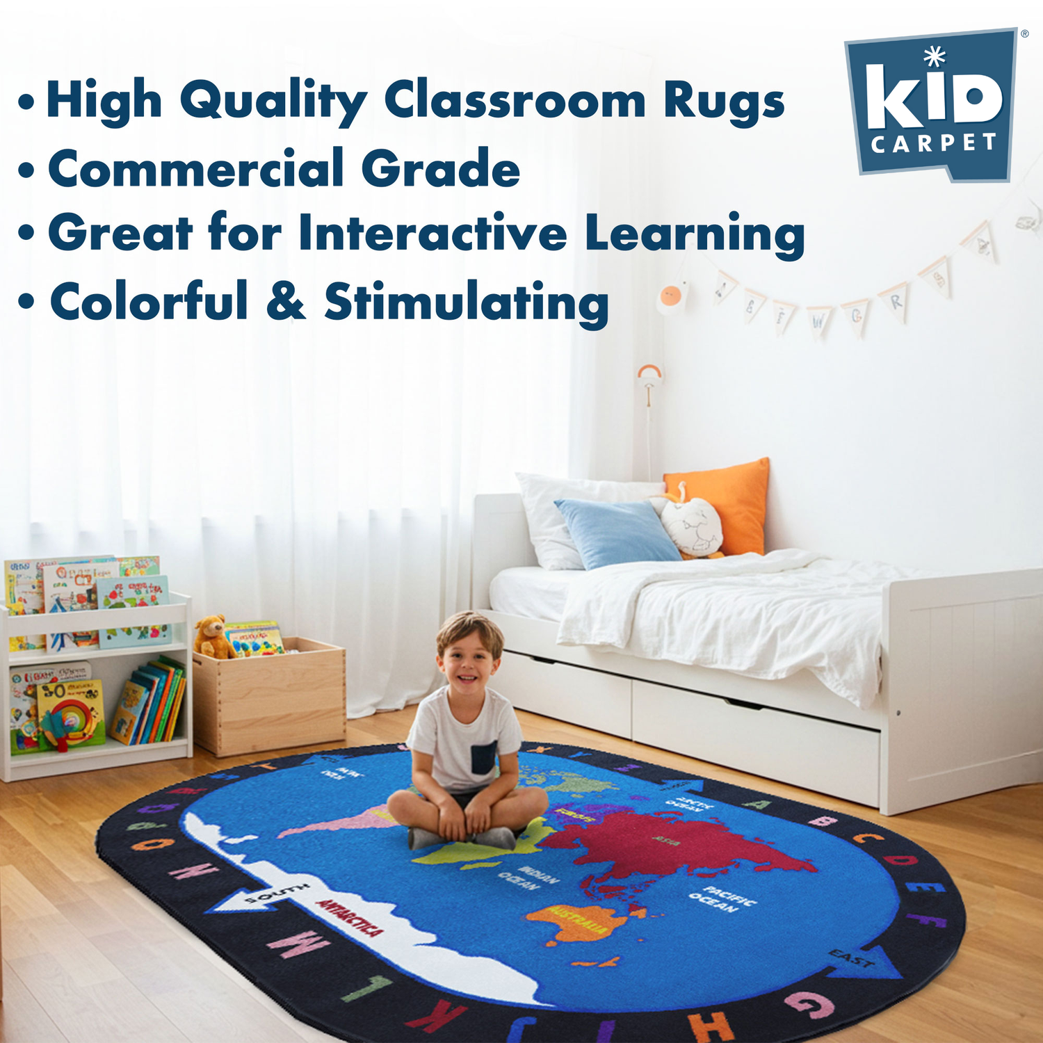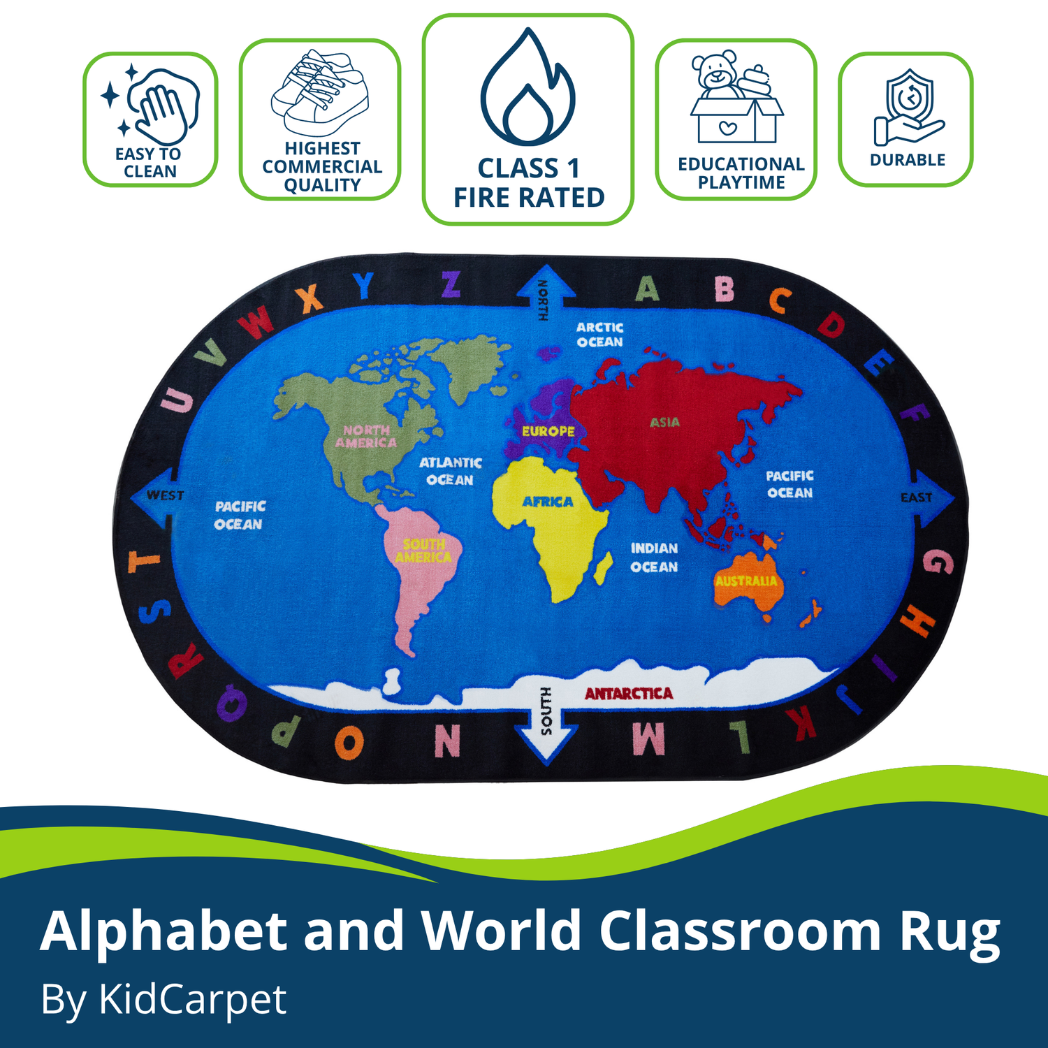 Alphabet and World Classroom Rug - Alphabet and World Classroom Rug / 6' x 8'6" Oval Quick Ship is backordered and will ship as soon as it is back in stock.