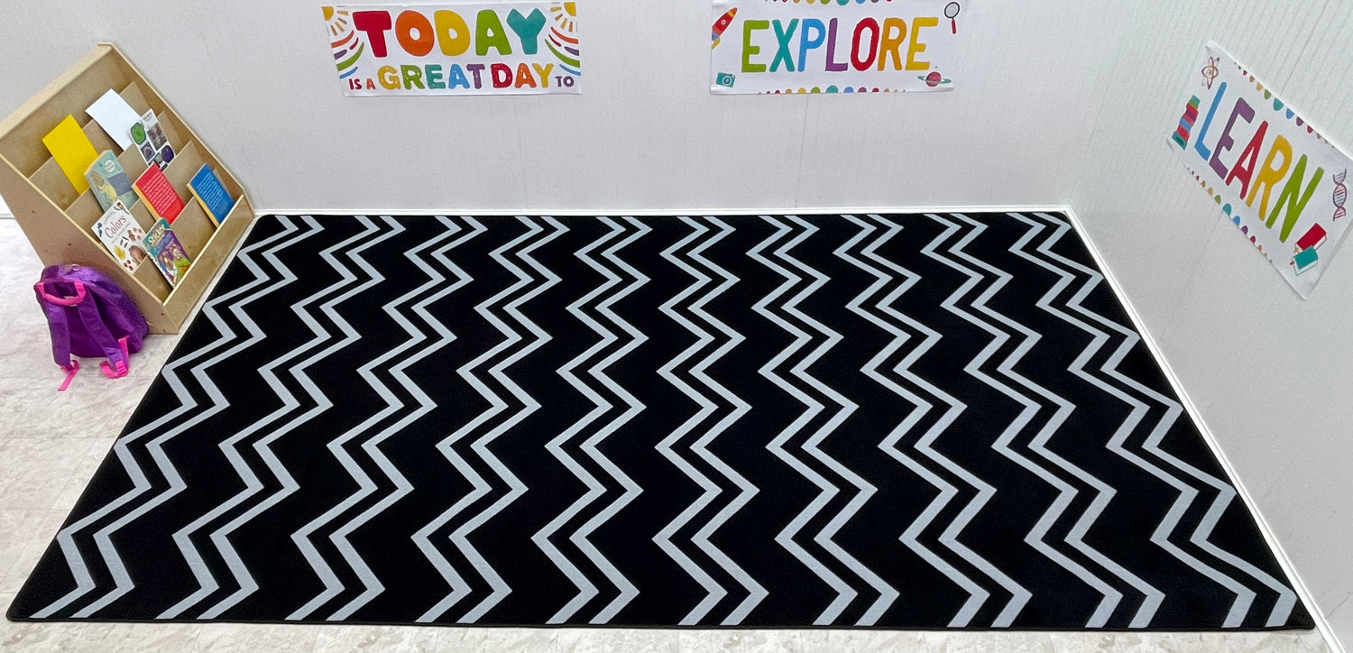 Chevron Kids Rug Black and Grey - Chevron Kids Rug Black and Gray / 4' x 6' Rectangle Quick Ship is backordered and will ship as soon as it is back in stock.