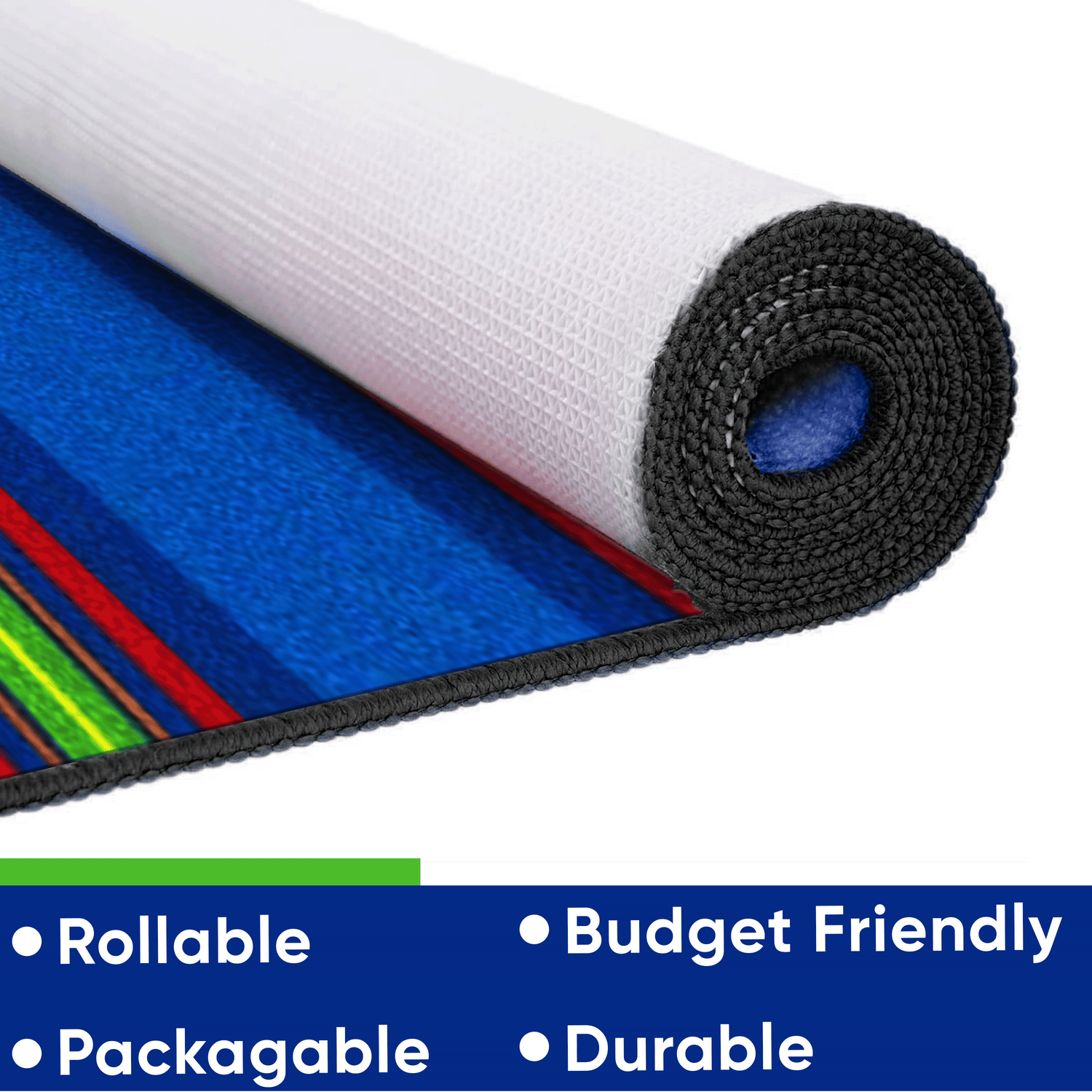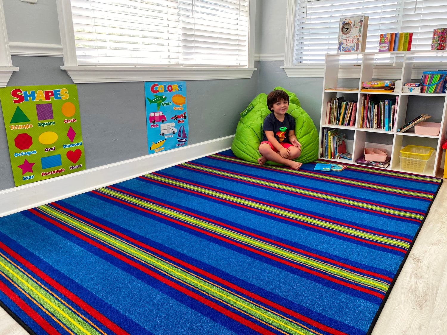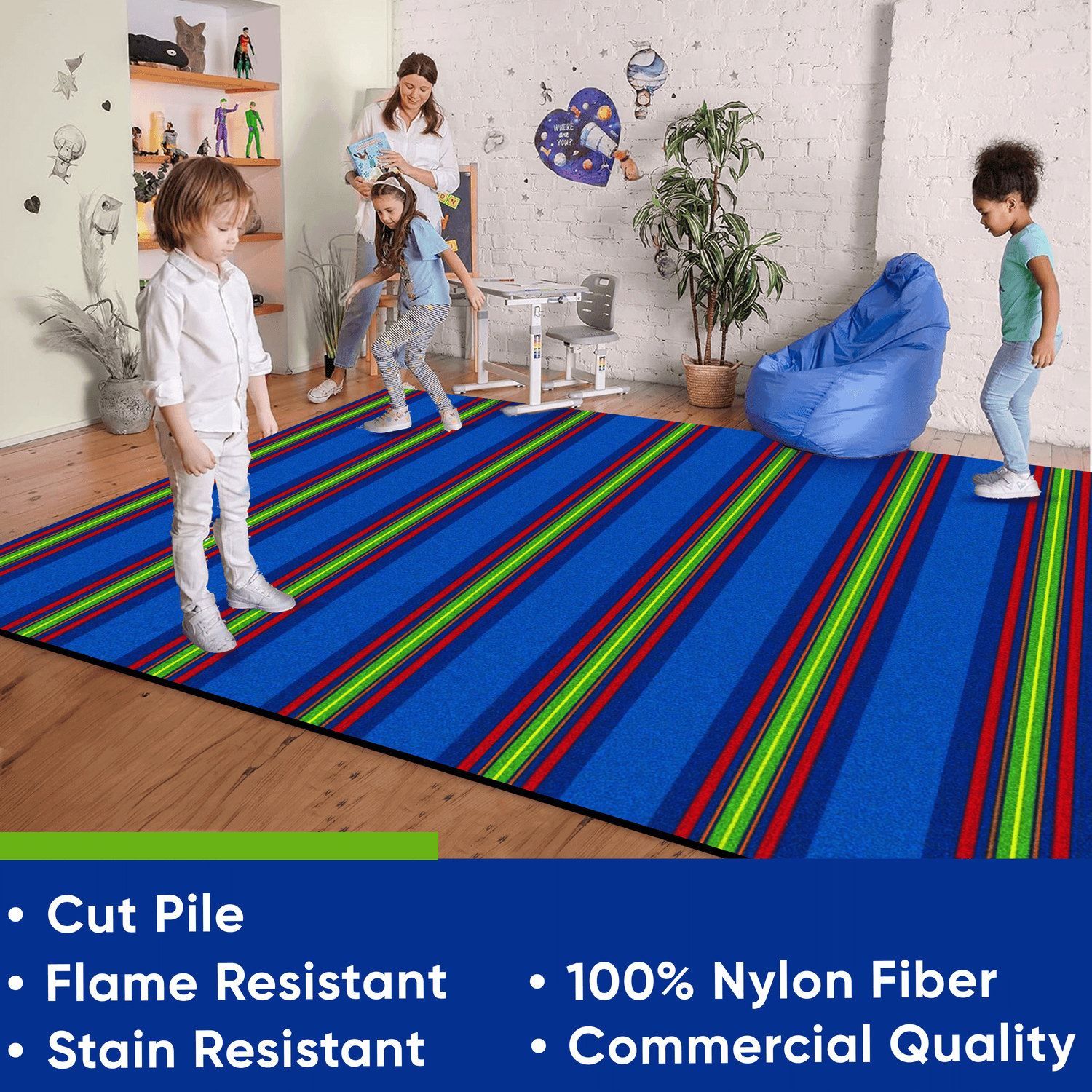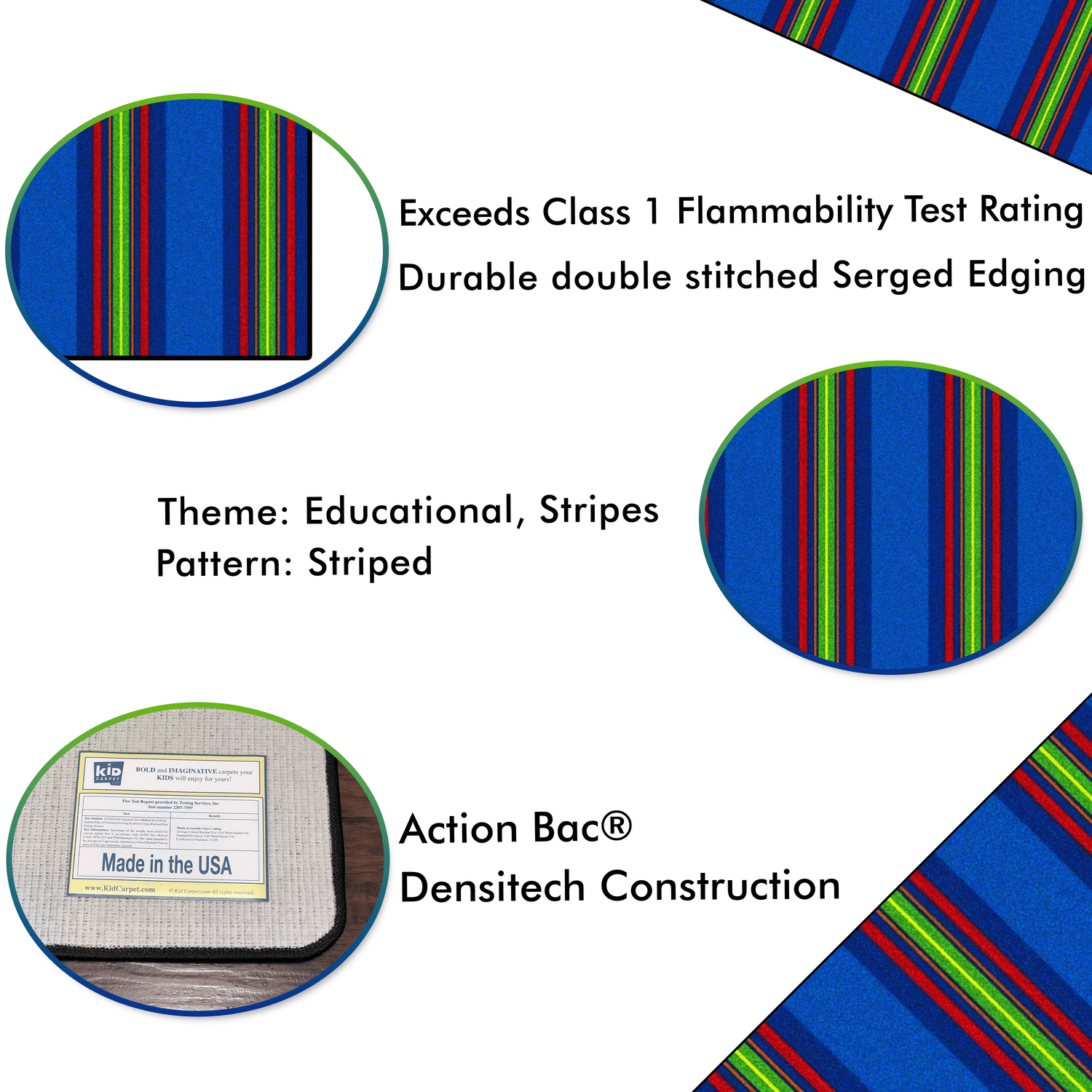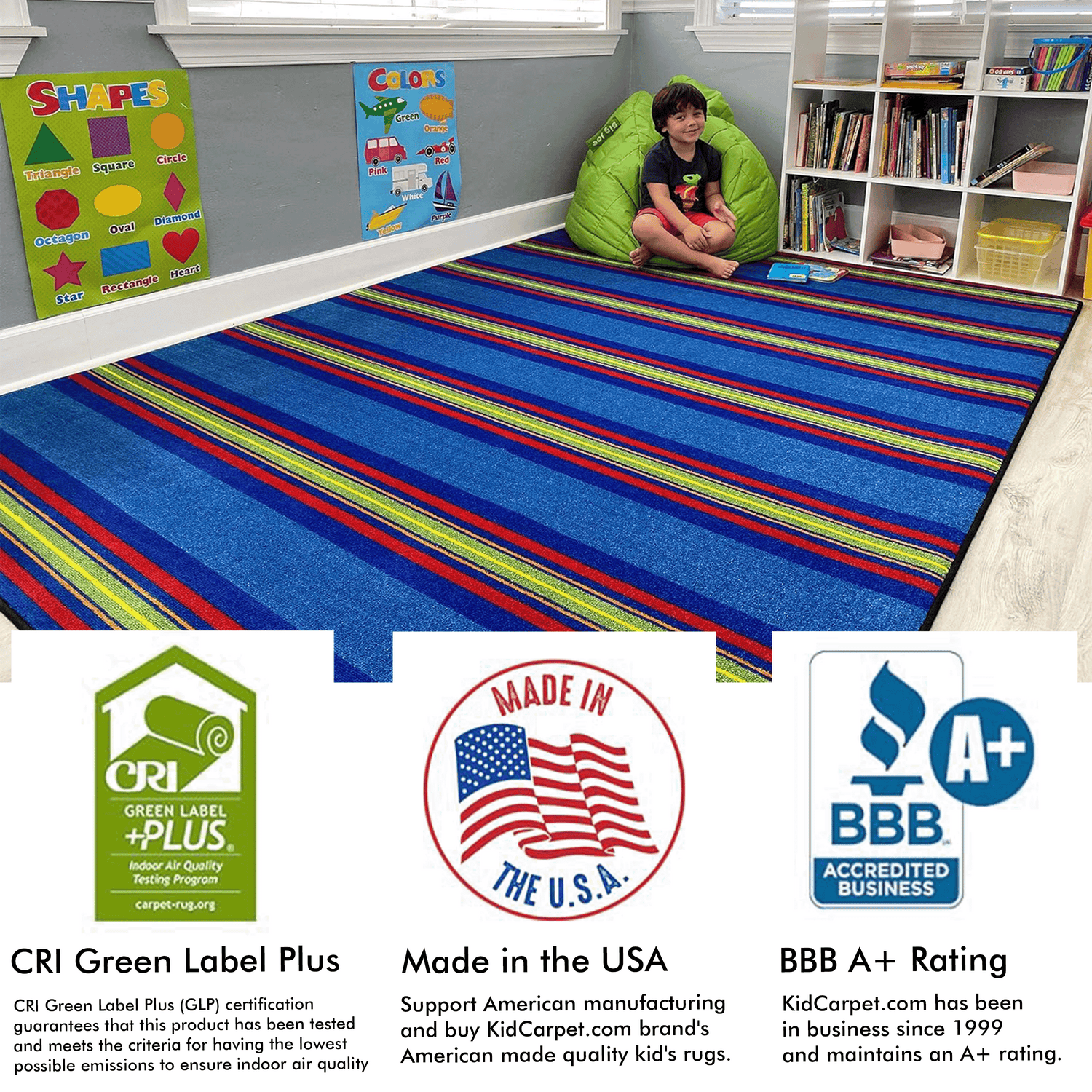 - This kids rug features the classic look of stripes using a fun color palette. The Classic Stripes Rug offers a simplistic pattern which was designed to add just a splash of color in your classroom or kids area. Great for lining kids up, or for a seating rug.