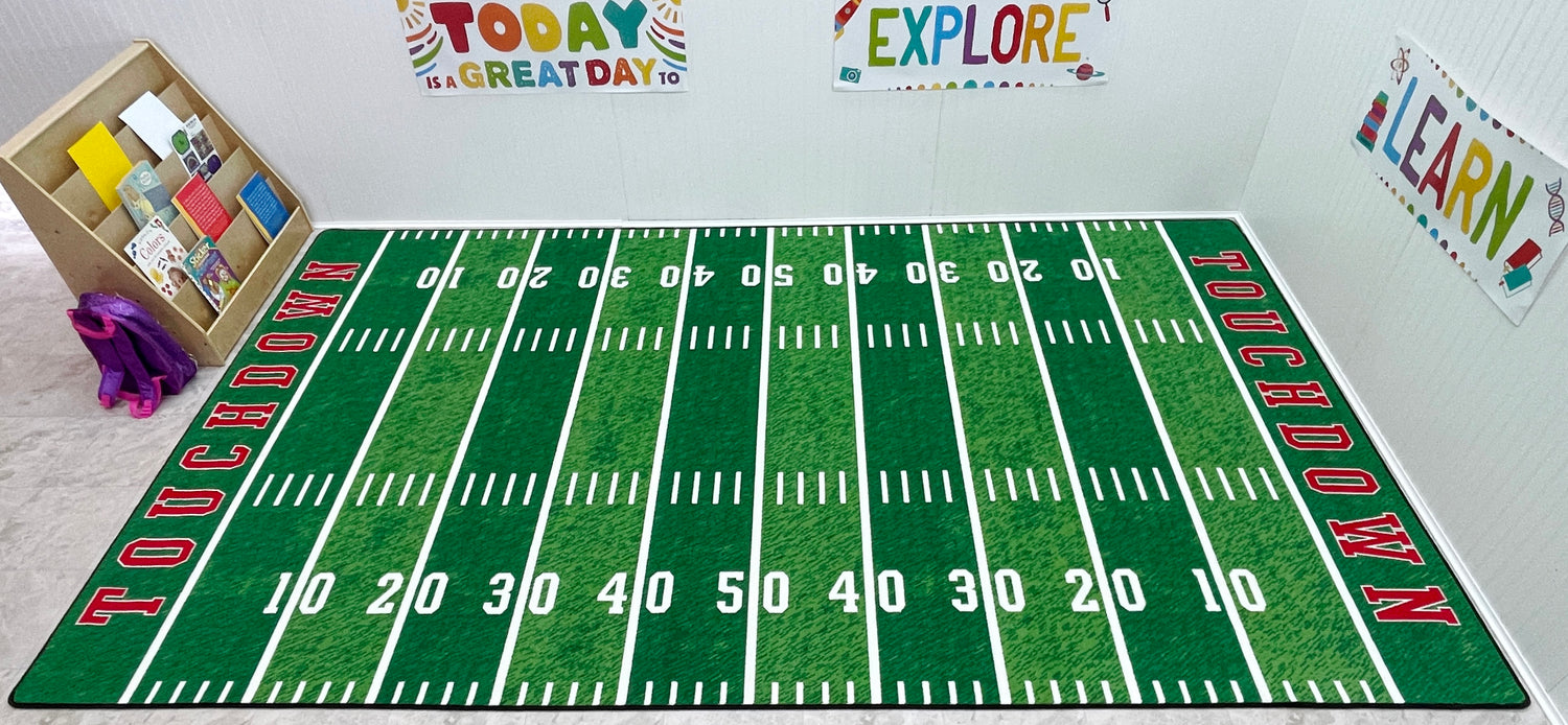 - This football field rug is perfect for a bedroom, playroom, sports room, recreation room or basement. Should we even call this one a kid's rug? Adults love this football rug too!