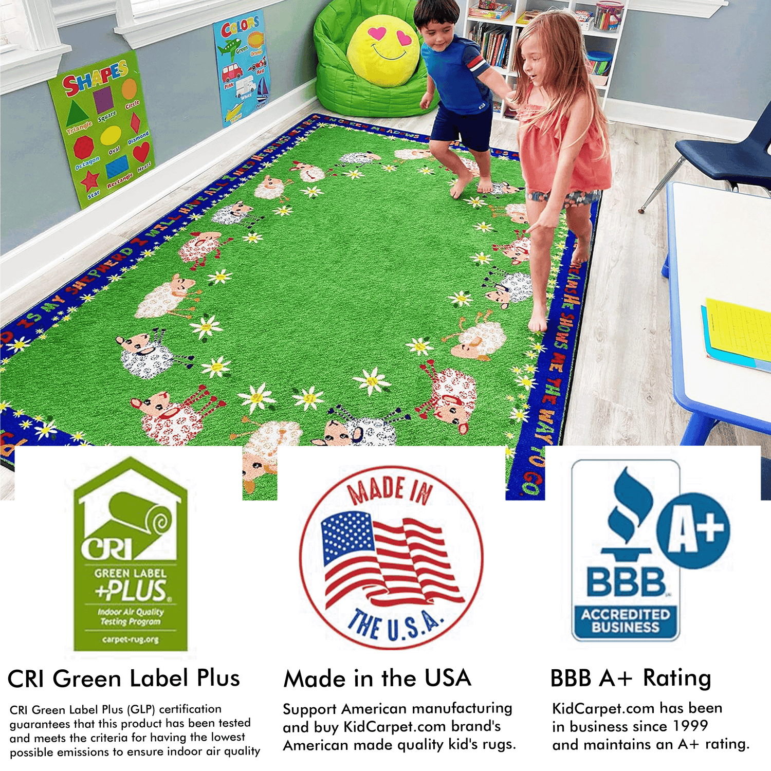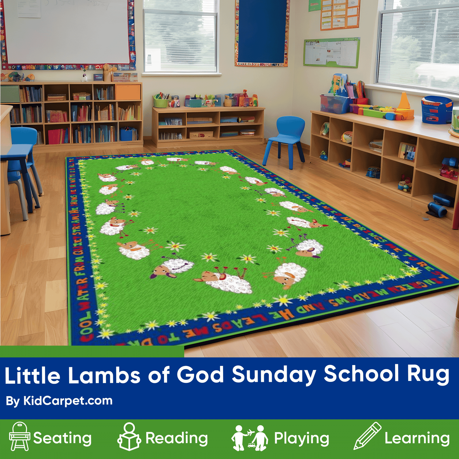 Little Lambs of God Circle Time Rug - Little Lambs of God Circle Time Rug / 4' X 6' Rectangle Quick Ship is backordered and will ship as soon as it is back in stock.