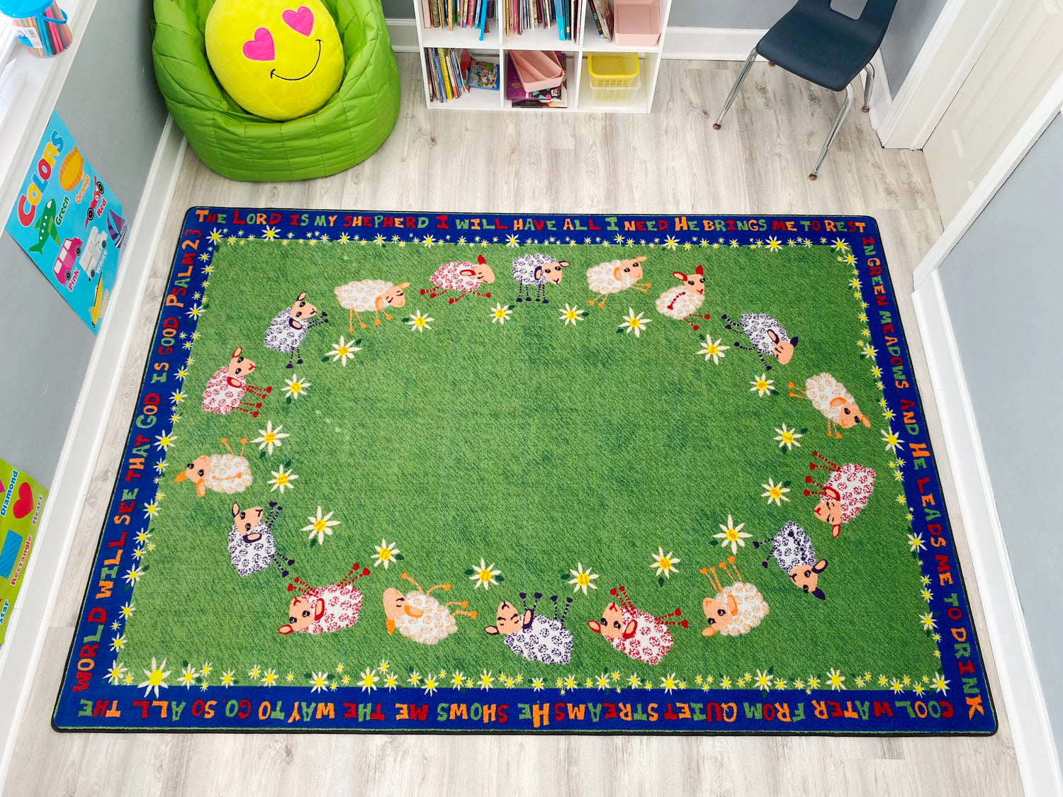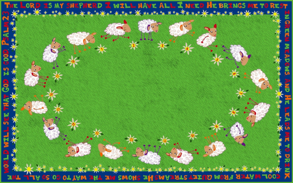 - Psalm 23 is beautifully illustrated in this children's circle time rug. Perfect for a church nursery or religious classroom.