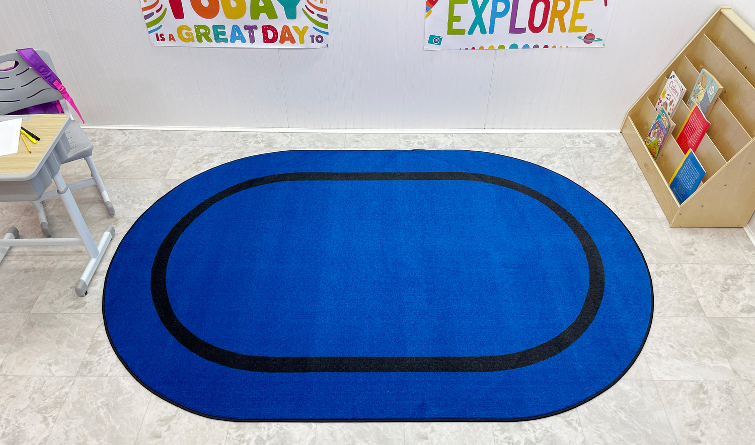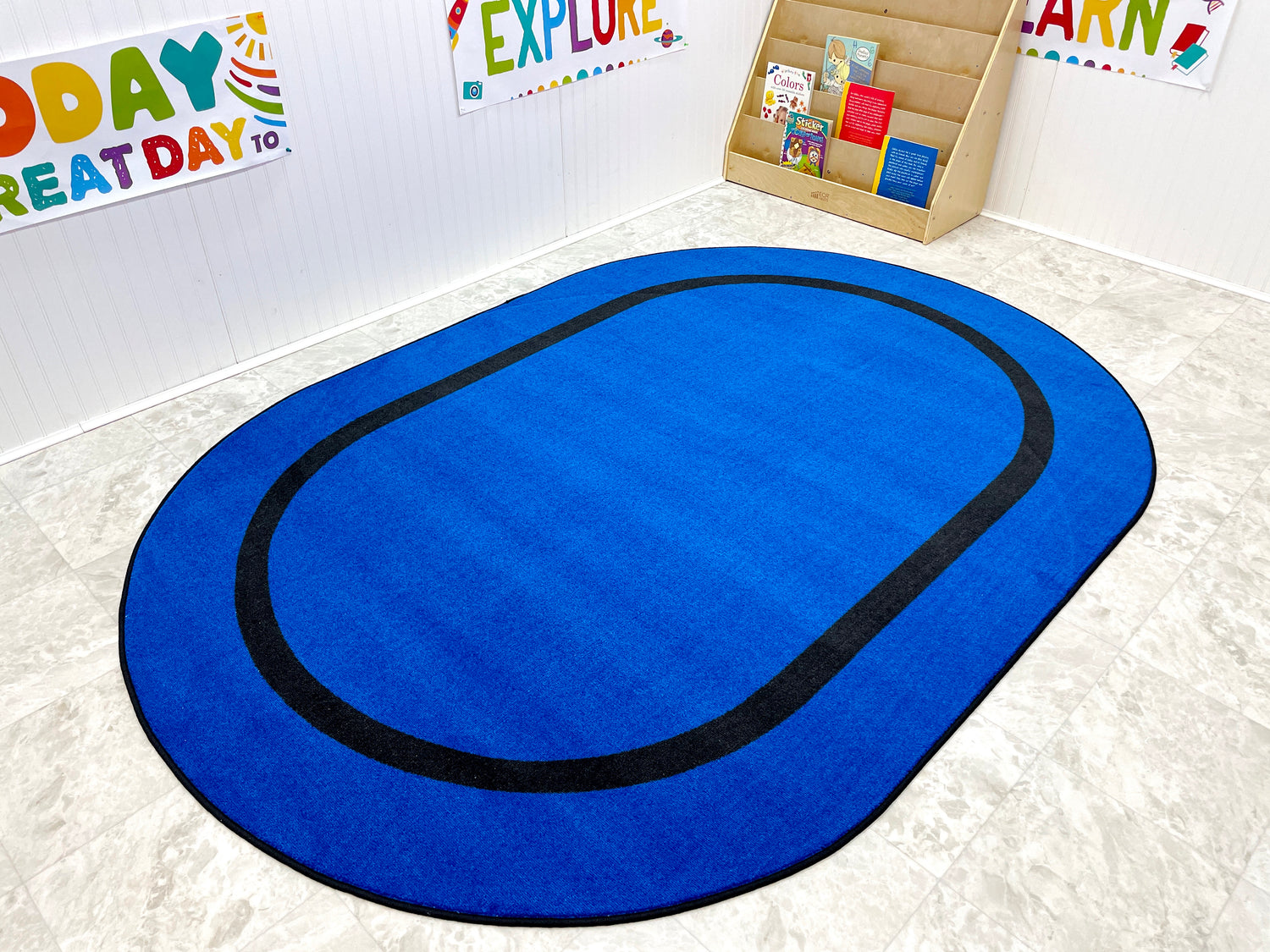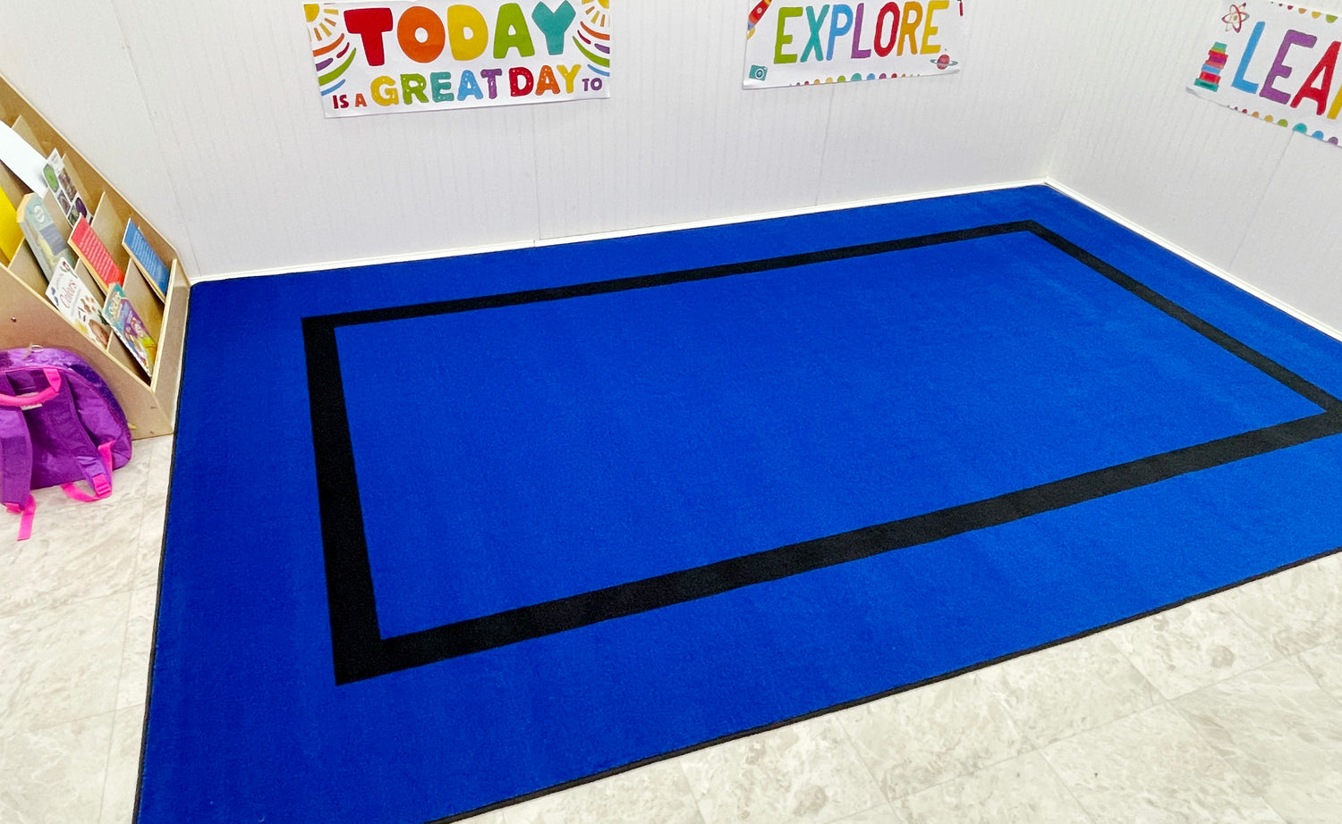 Montessori Classroom Rug Blue With Black Line - Montessori Classroom Rug Blue/Black / 4' X 6' Rectangle Quick Ship is backordered and will ship as soon as it is back in stock.