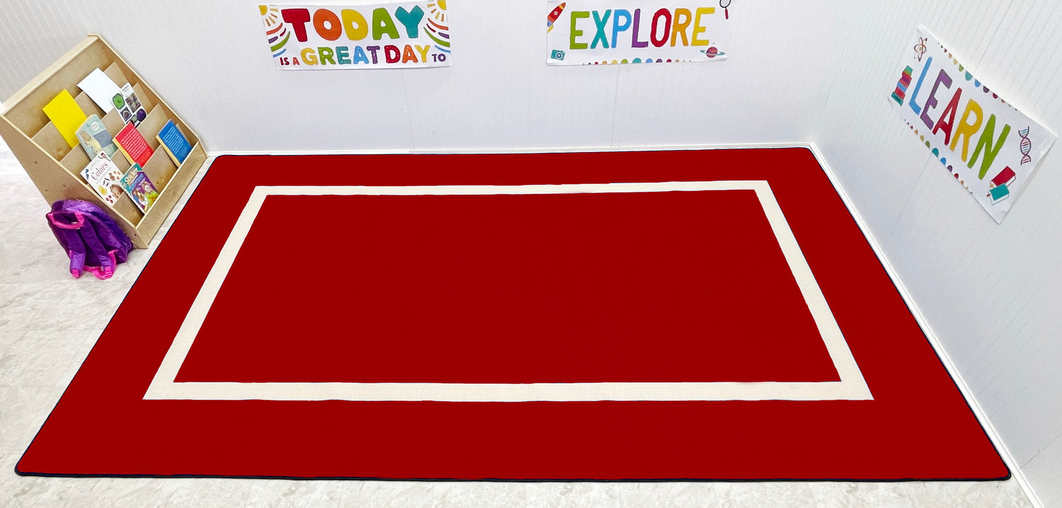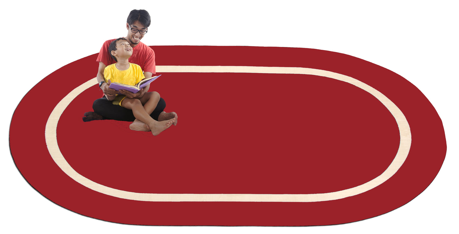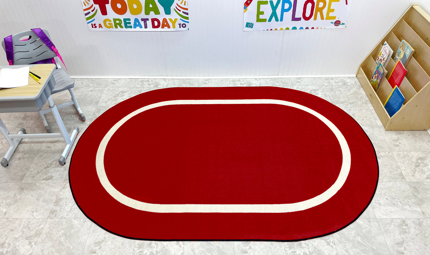 Montessori Classroom Rug Red With Creme Line - Montessori Classroom Rug Red/Creme / 4' X 6' Oval Quick Ship is backordered and will ship as soon as it is back in stock.