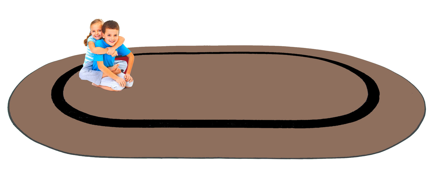 Montessori Classroom Rug Tan With Black Line - Montessori Classroom Rug Tan/Black / 4' X 6' Oval Quick Ship is backordered and will ship as soon as it is back in stock.