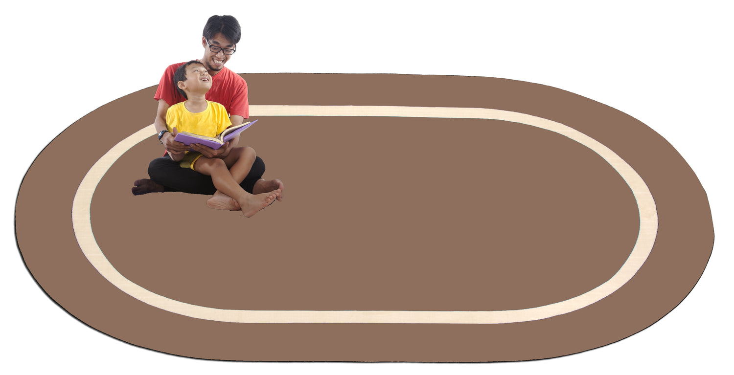 Montessori Classroom Rug Tan With Creme Line - Montessori Classroom Rug Tan/Creme / 4' X 6' Oval Quick Ship is backordered and will ship as soon as it is back in stock.