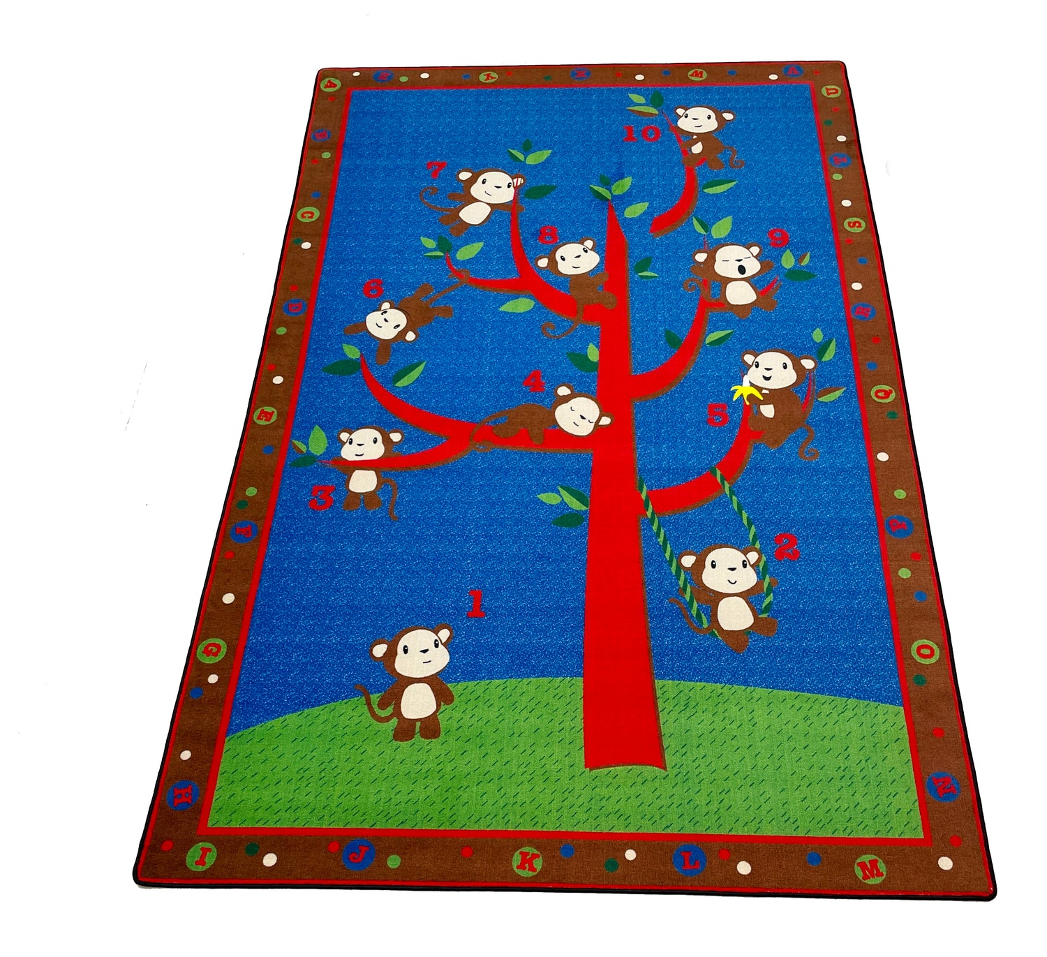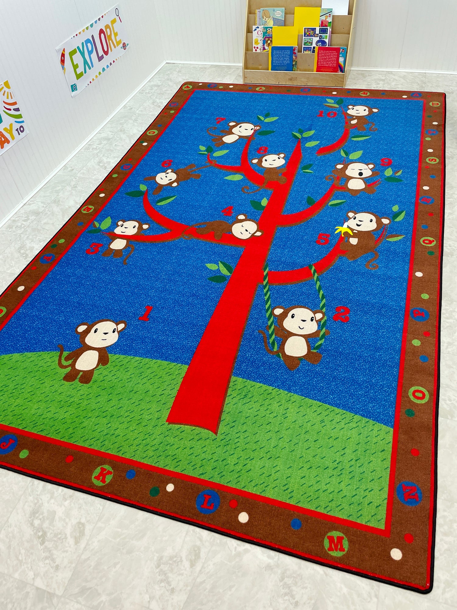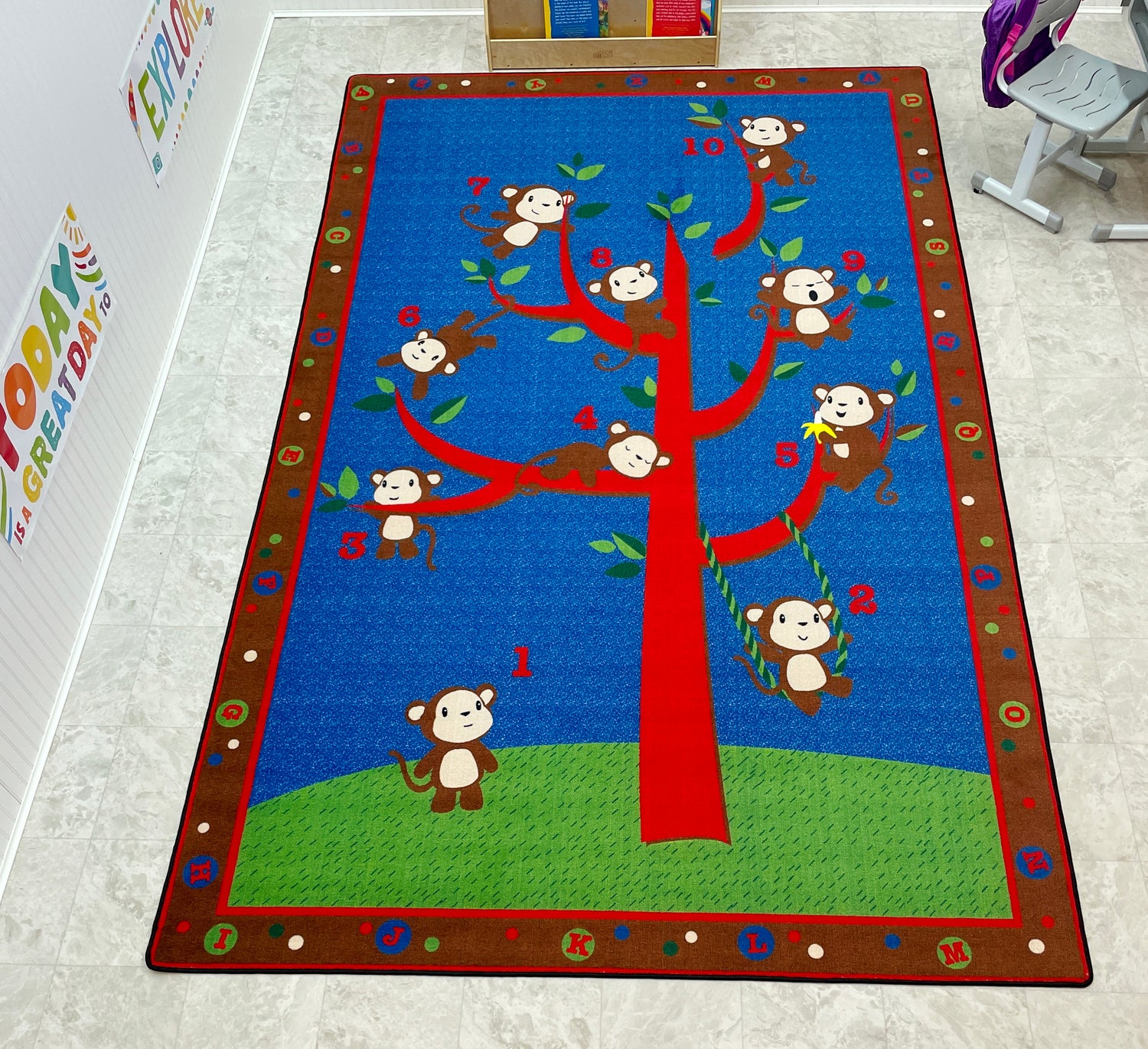 - Kids will love to "monkey around" while learning ABCs and counting on this playful and fun classroom rug