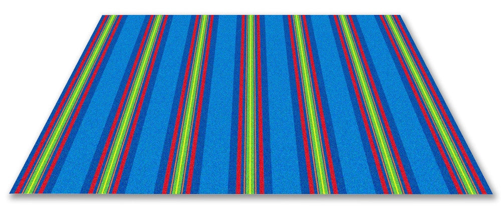 • This kids rug features the classic look of stripes using a fun color palette. The Classic Stripes Rug offers a simplistic pattern which was designed to add just a splash of color in your classroom or kids area. Great for lining kids up, or for a seating rug.