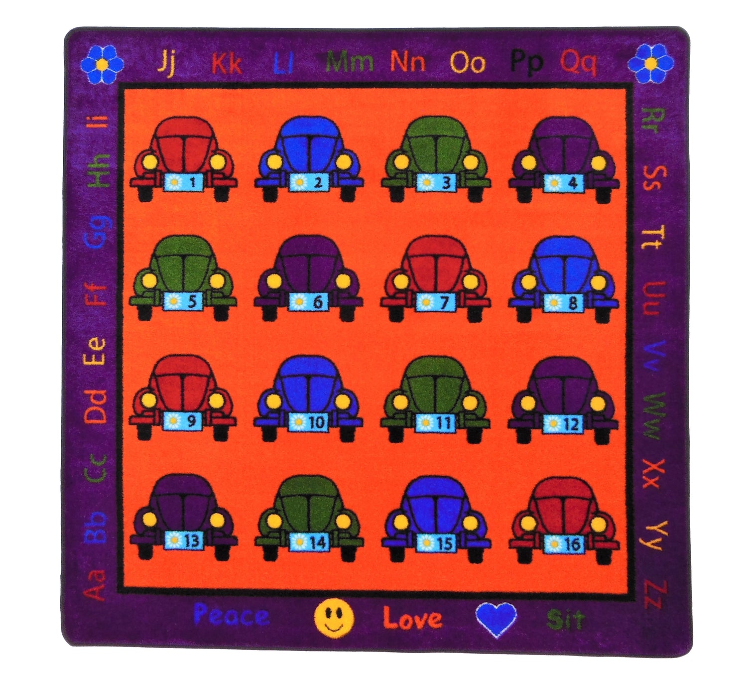 - Children can learn their ABC's and 123's while sitting on this play rug with their own love bug!