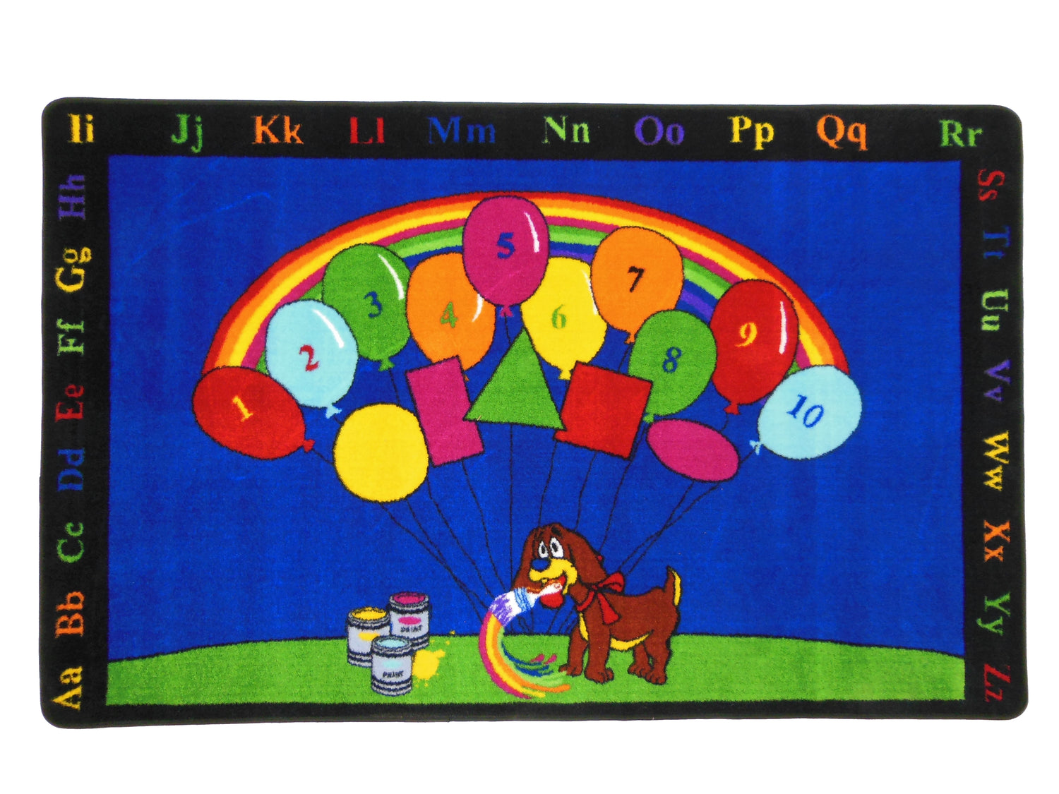 - This classroom rug features the alphabet and numbers in rainbow colors.