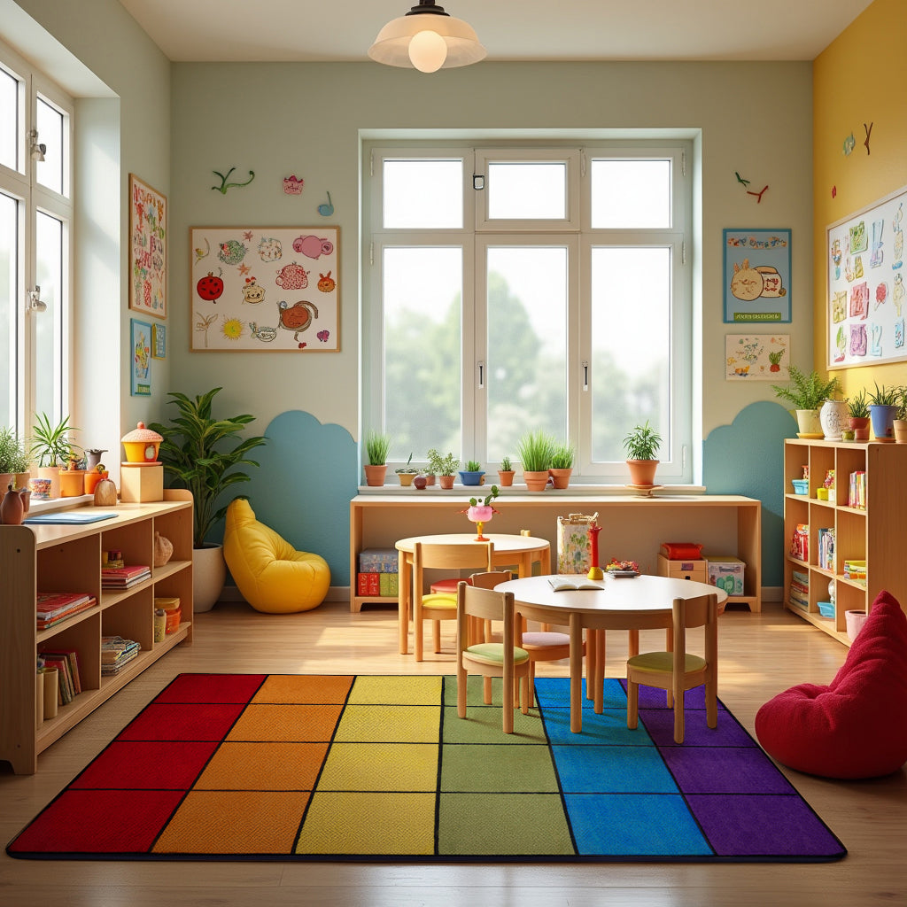 - One of our most popular classroom rugs, the Rainbow Blocks Seating Rug is designed with personal space and class organization in mind. This rug seats up to 24 children.
